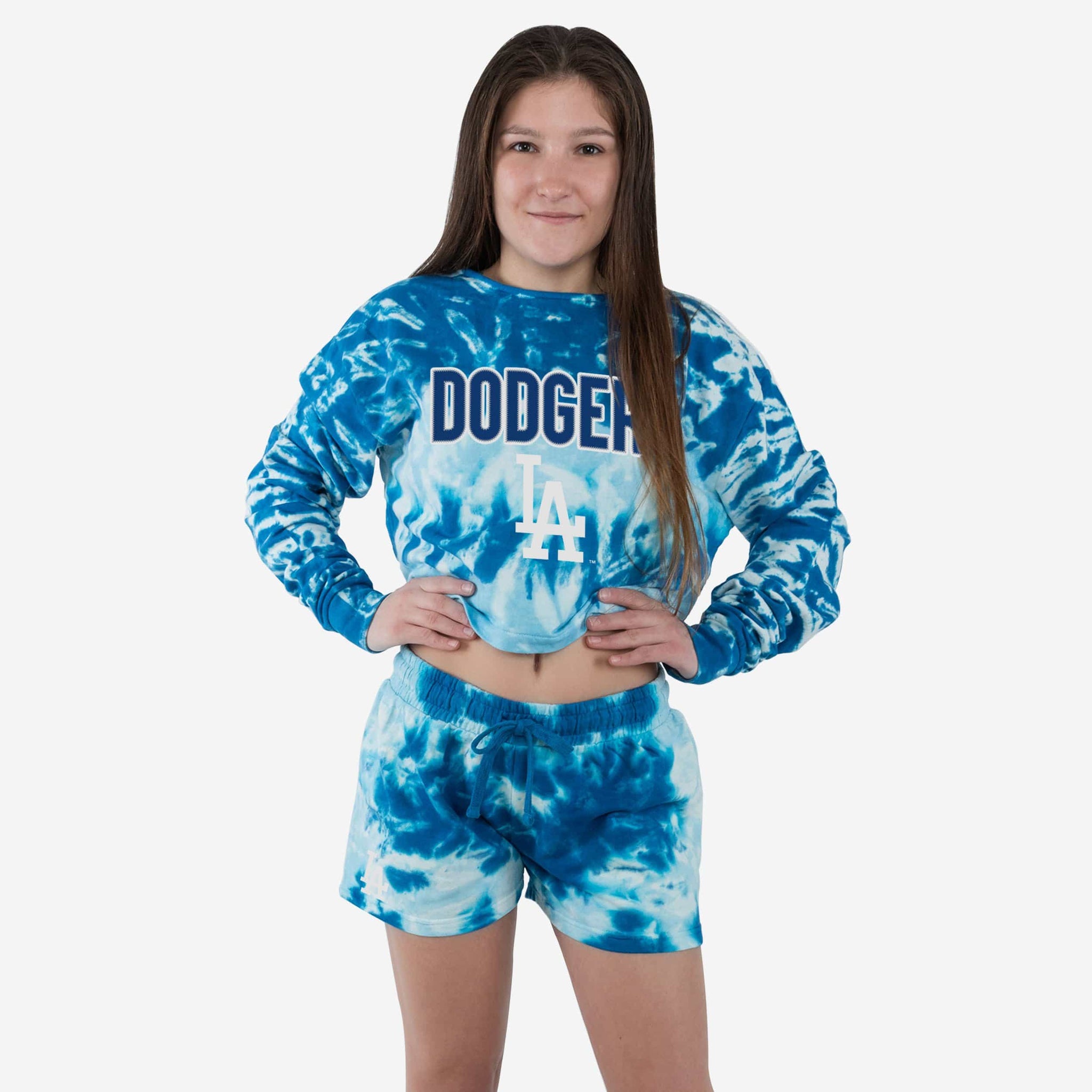 The warmth of a sweater with the style of a crop top! This Los Angeles Dodgers Women's Tie-Dye Rush Crop Top Sweater has it all!