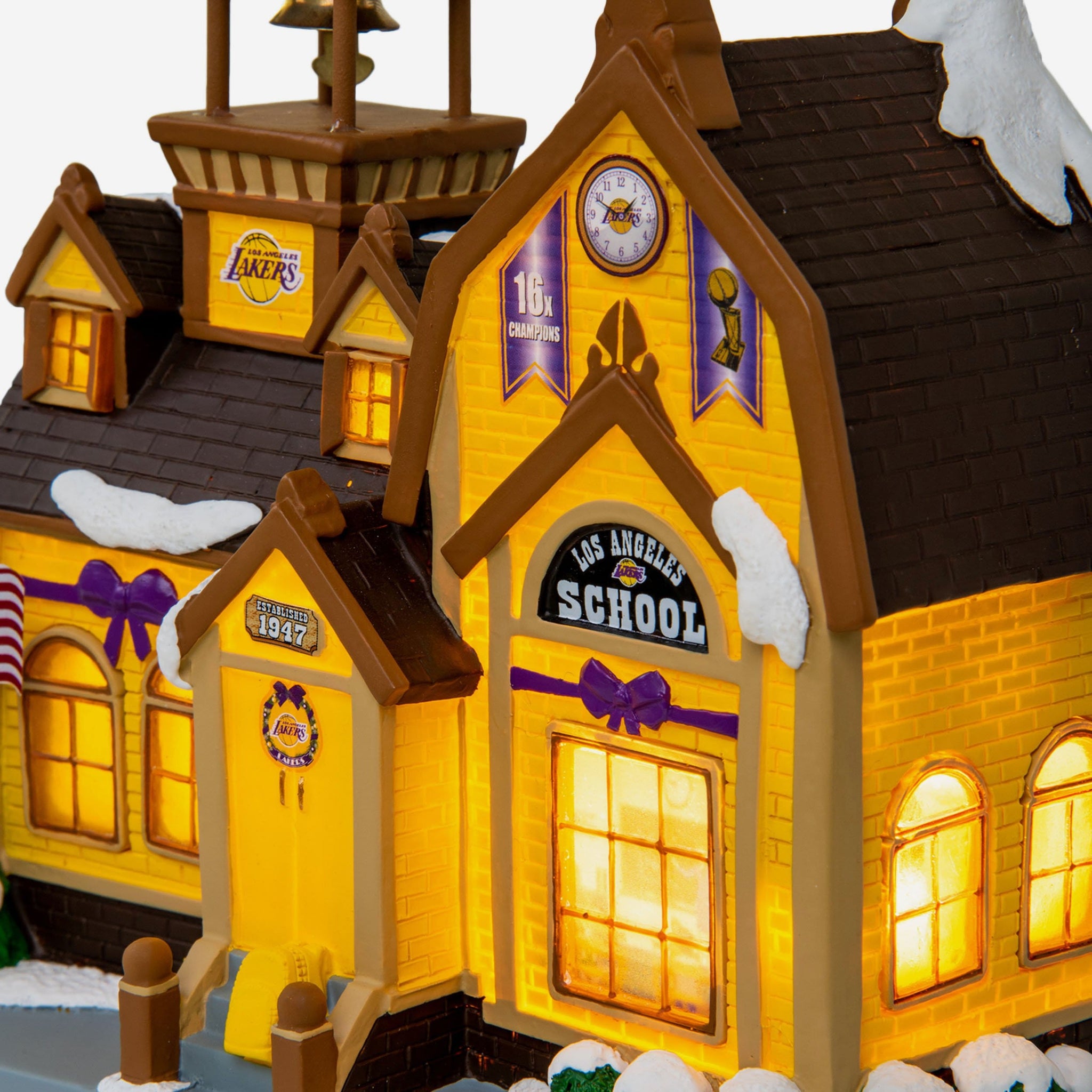 School everyone on how to cheer on the team while you spread some holiday cheer with this Los Angeles Lakers Light Up Team Schoolhouse!