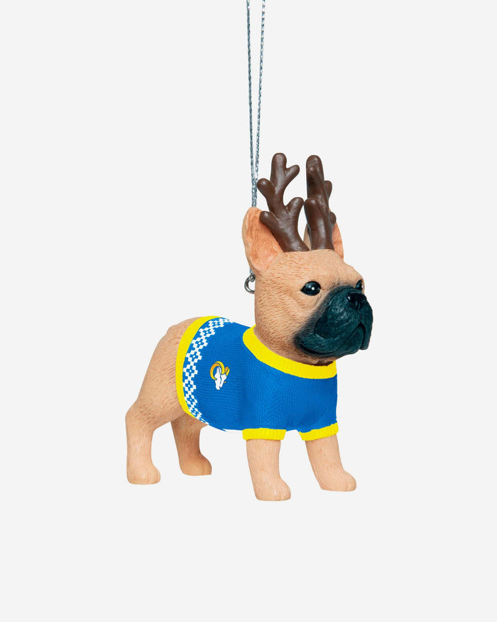 Frenchies are great on their own. But Frenchies in team sweaters? That's even greater! Introducing the Los Angeles Rams French Bulldog Wearing Sweater Ornament!