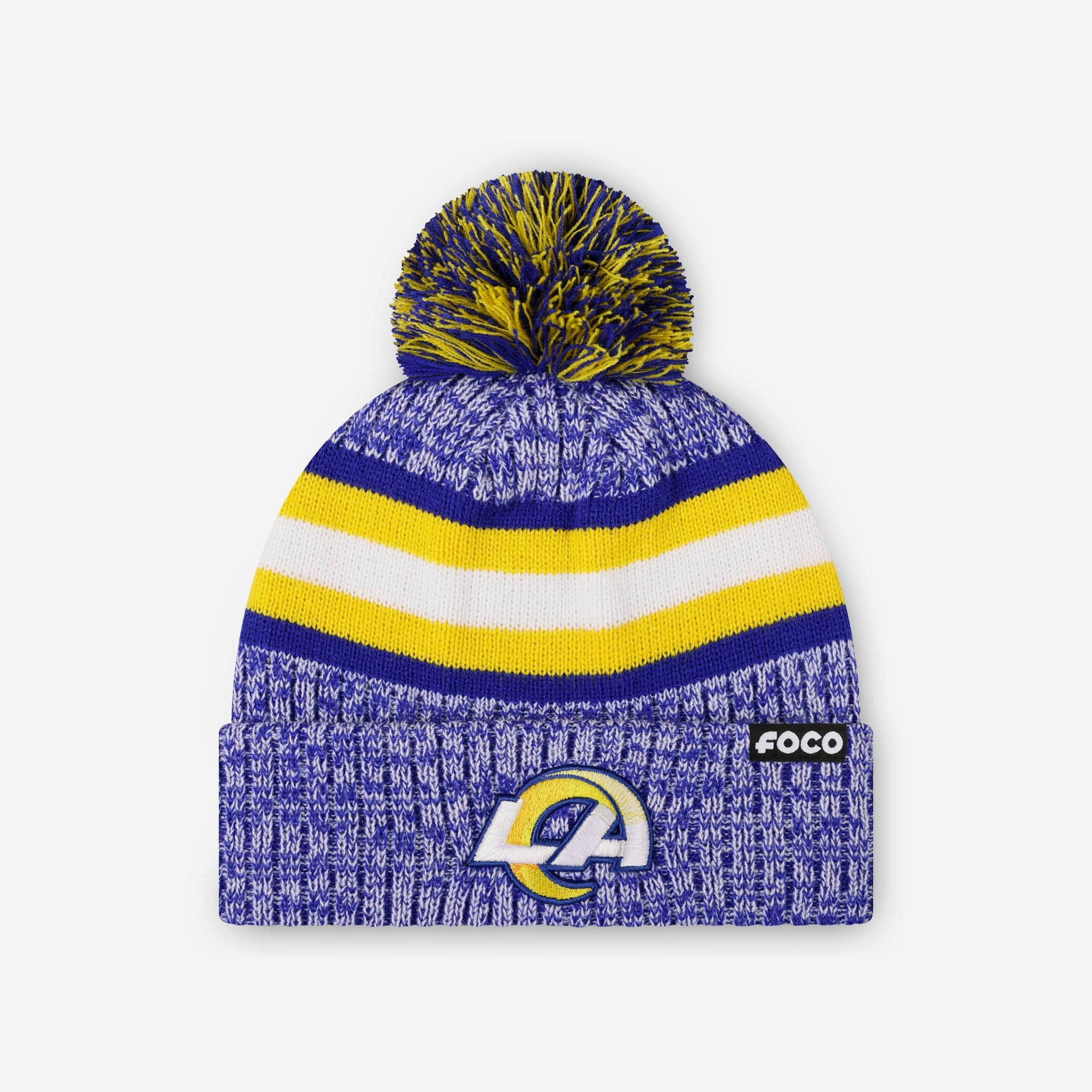 Don’t get left out in the cold. Make the smart play for gameday and beyond with the Los Angeles Rams Heather Team Stripe Lined Pom Beanie!