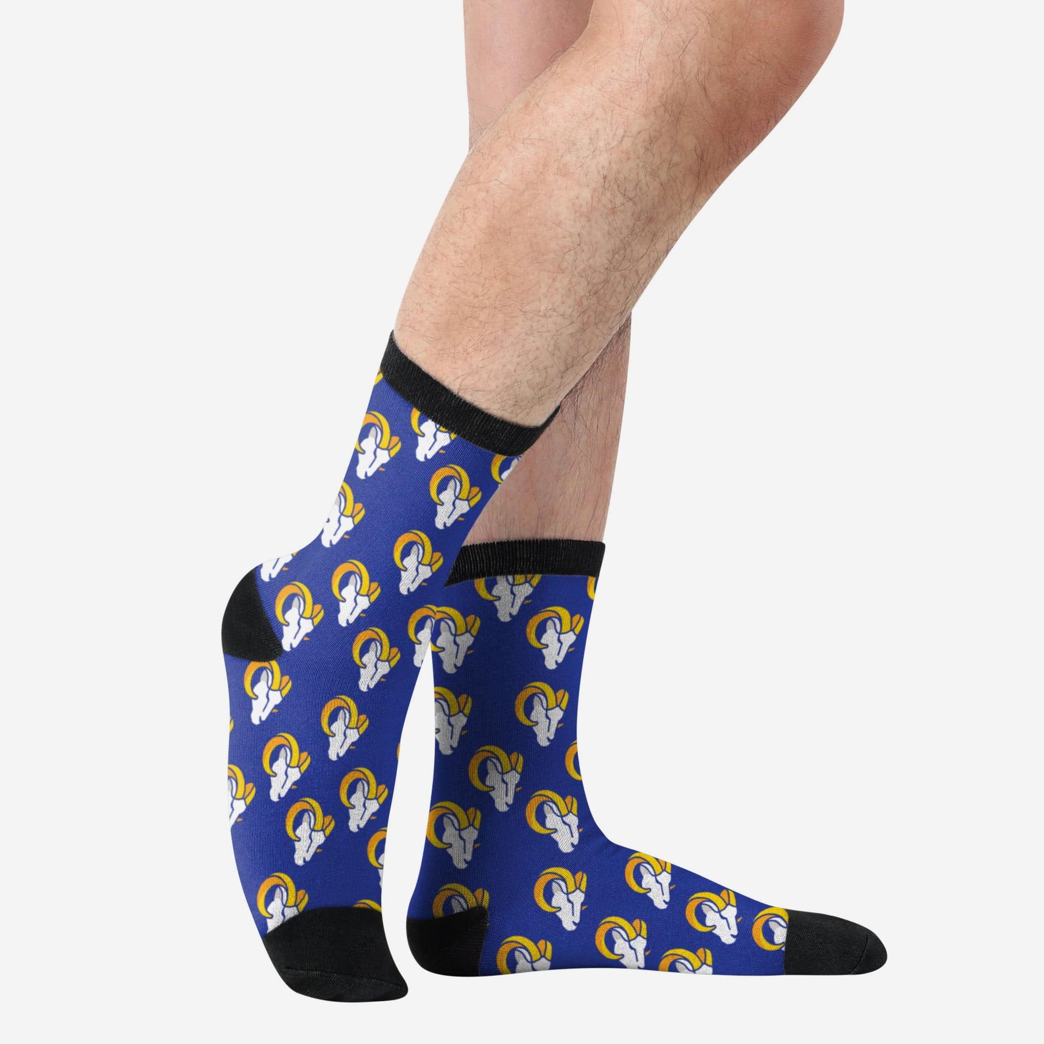 You're a real fan. You want to show off that that elite fandom from head-to-toe. Don't worry. These Los Angeles Rams Logo Blast Socks have got you covered. Well, the "toe" part, at least.