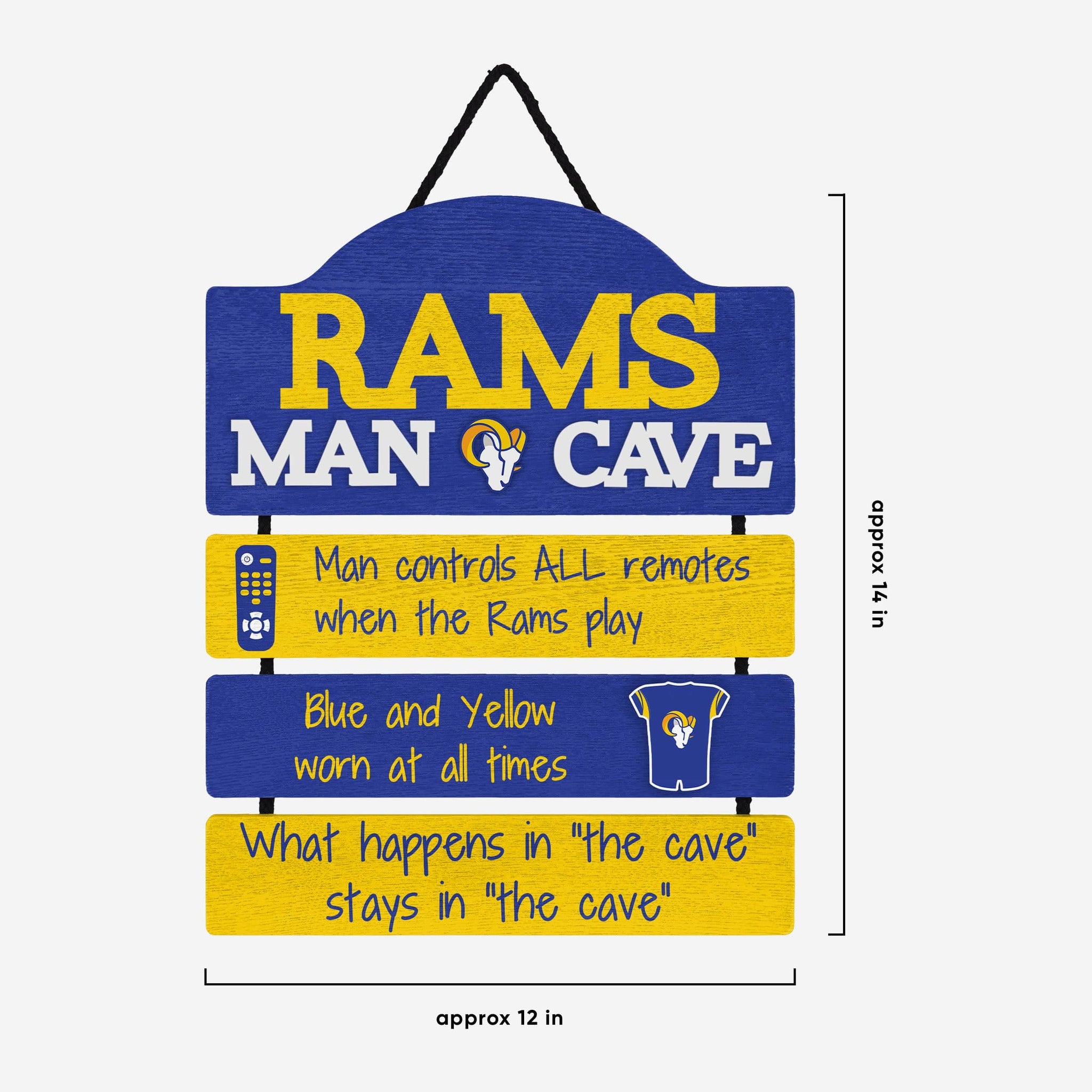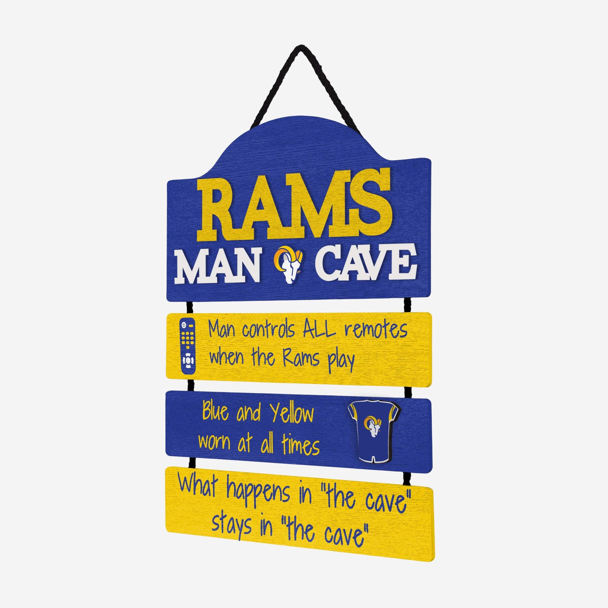 So, you're hosting the big watch party, and want to make sure you've decorated enough to impress your fellow fans. We've got you covered. This Los Angeles Rams Mancave Sign lets everyone know who the fan in charge is, and gives your home field plenty of advantage.