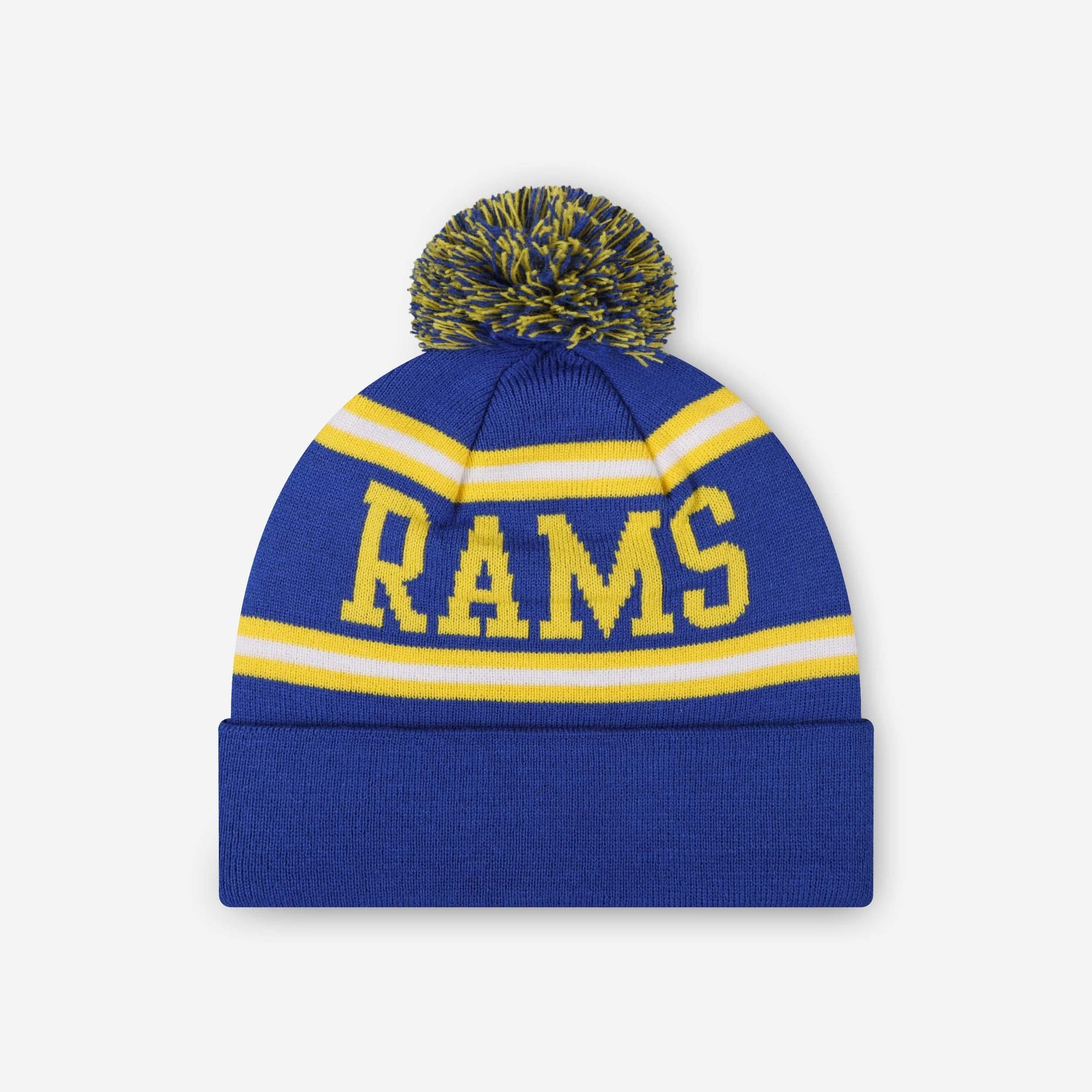 Heads up! This Los Angeles Rams Primary Logo Stripe Pom Beanie is so cozy, you might not want to take it off at all this winter.
