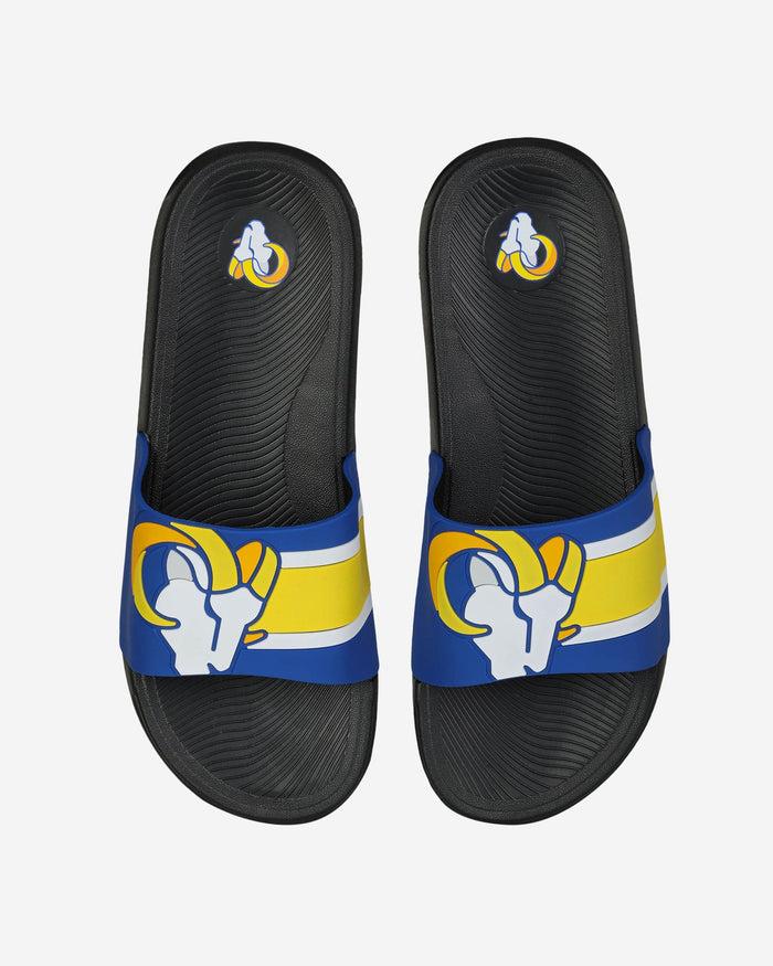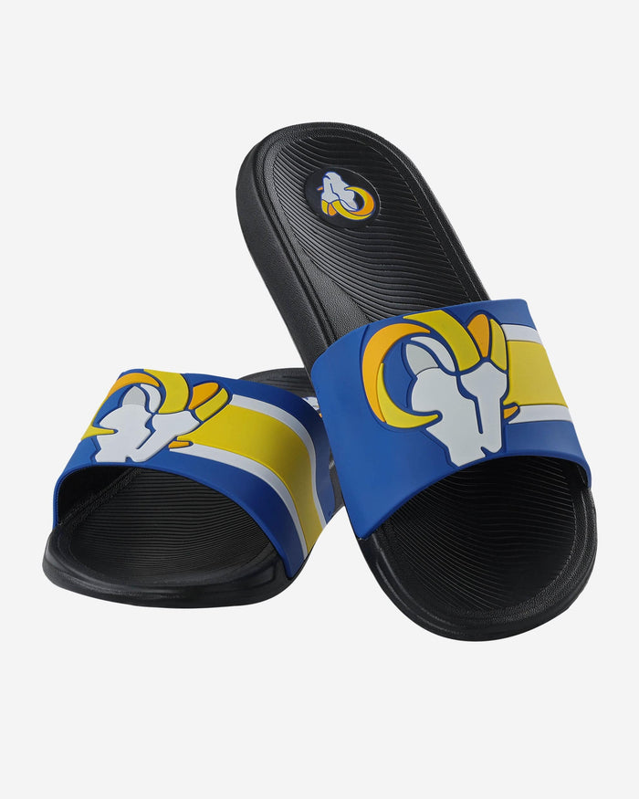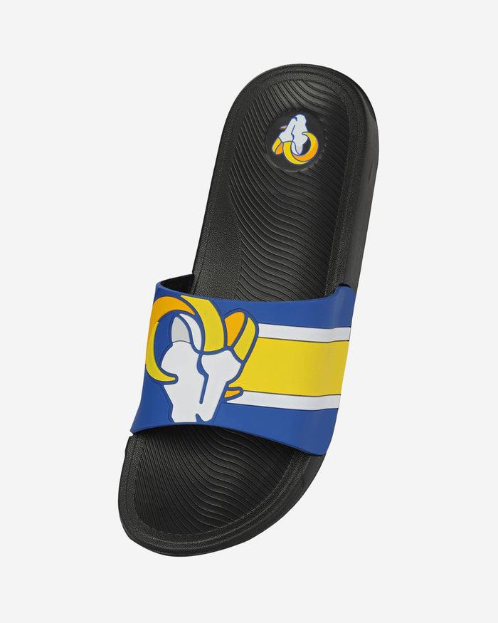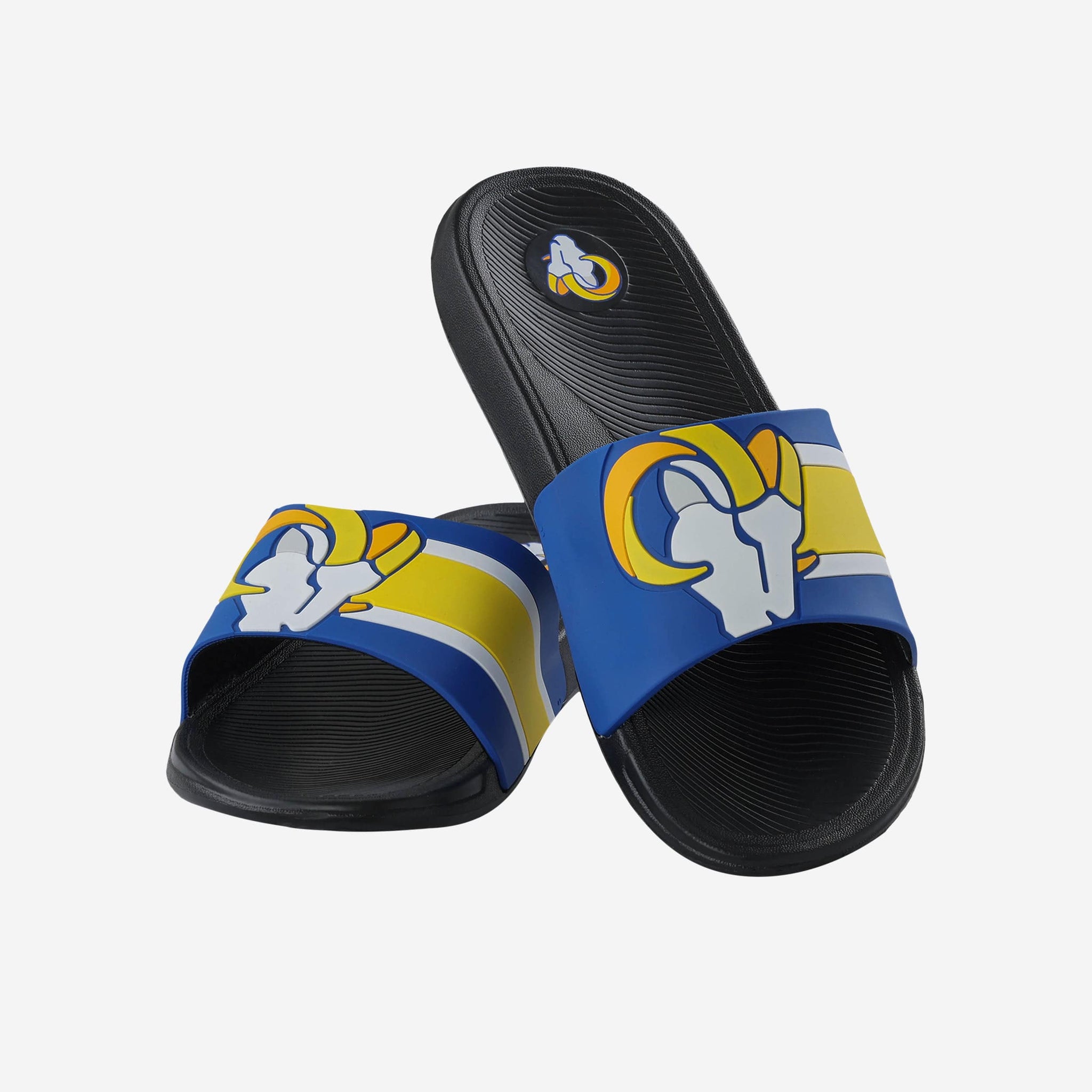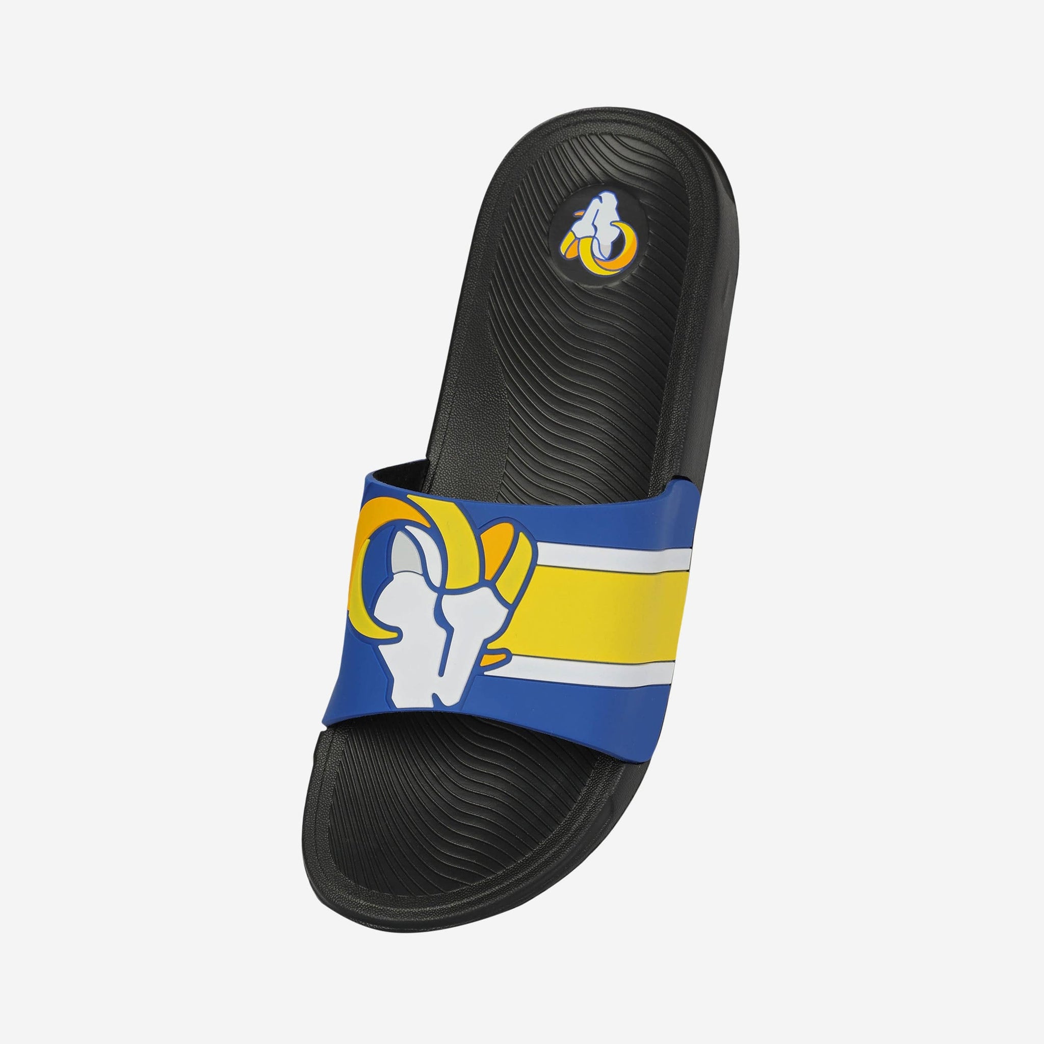 These Los Angeles Rams Striped Big Logo Raised Slides give a whole new meaning to the idea of putting some pep in your step.