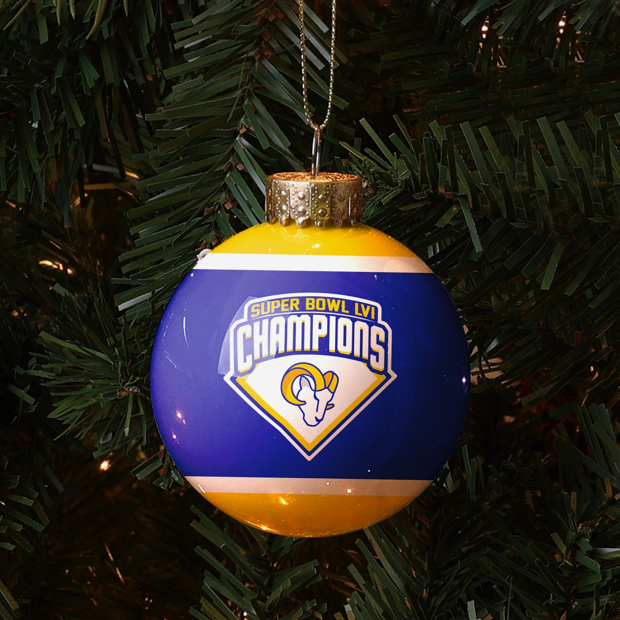 This season, the champs kicked some glass. Commemorate their historic season during the most wonderful time of the year with this Los Angeles Rams Super Bowl LVI Champions Glass Ball Ornament.