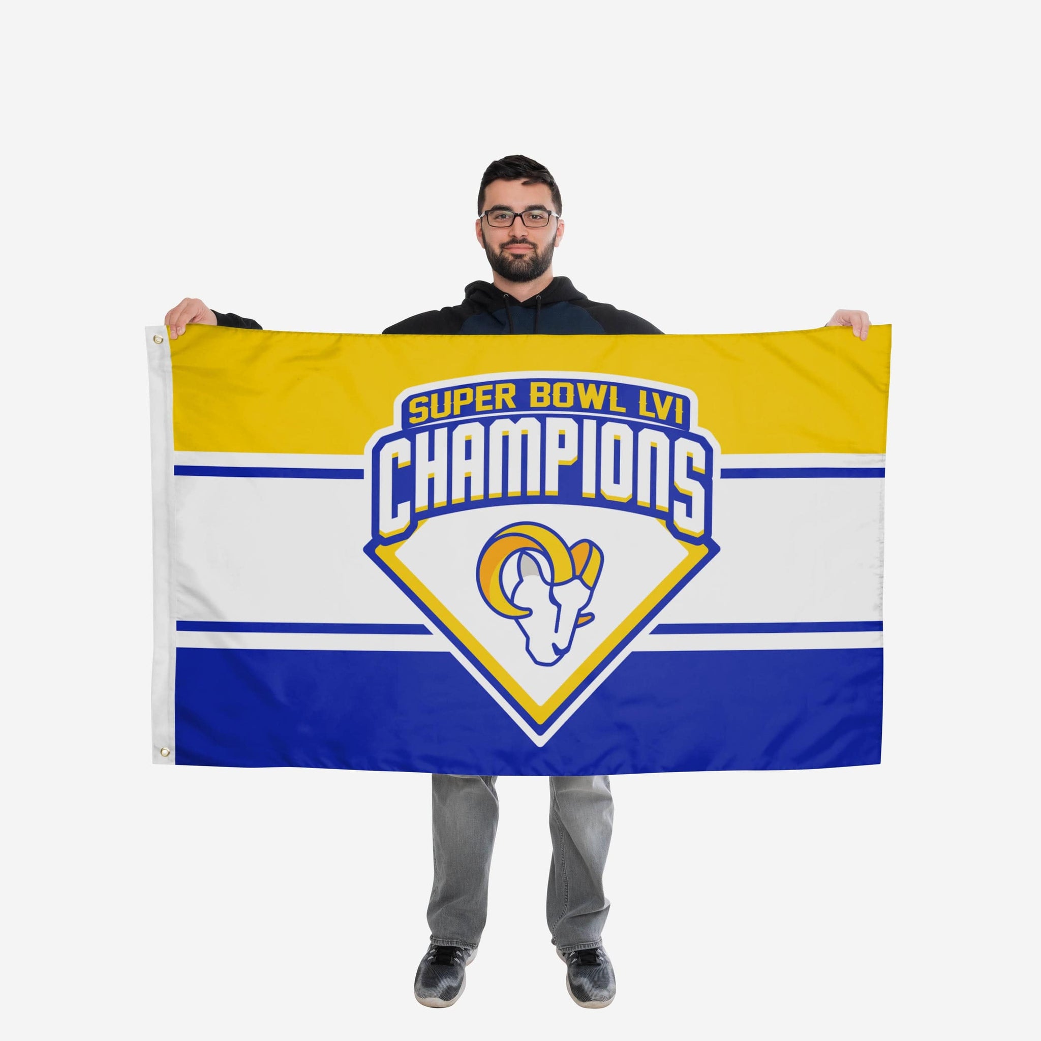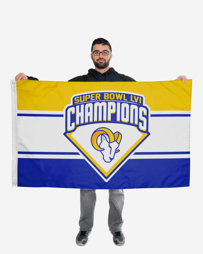 Does the whole neighborhood know you're a fan of the champs? No? Well, they will when you've got this Los Angeles Rams Super Bowl LVI Champions Horizontal Flag flying for the whole block to see.