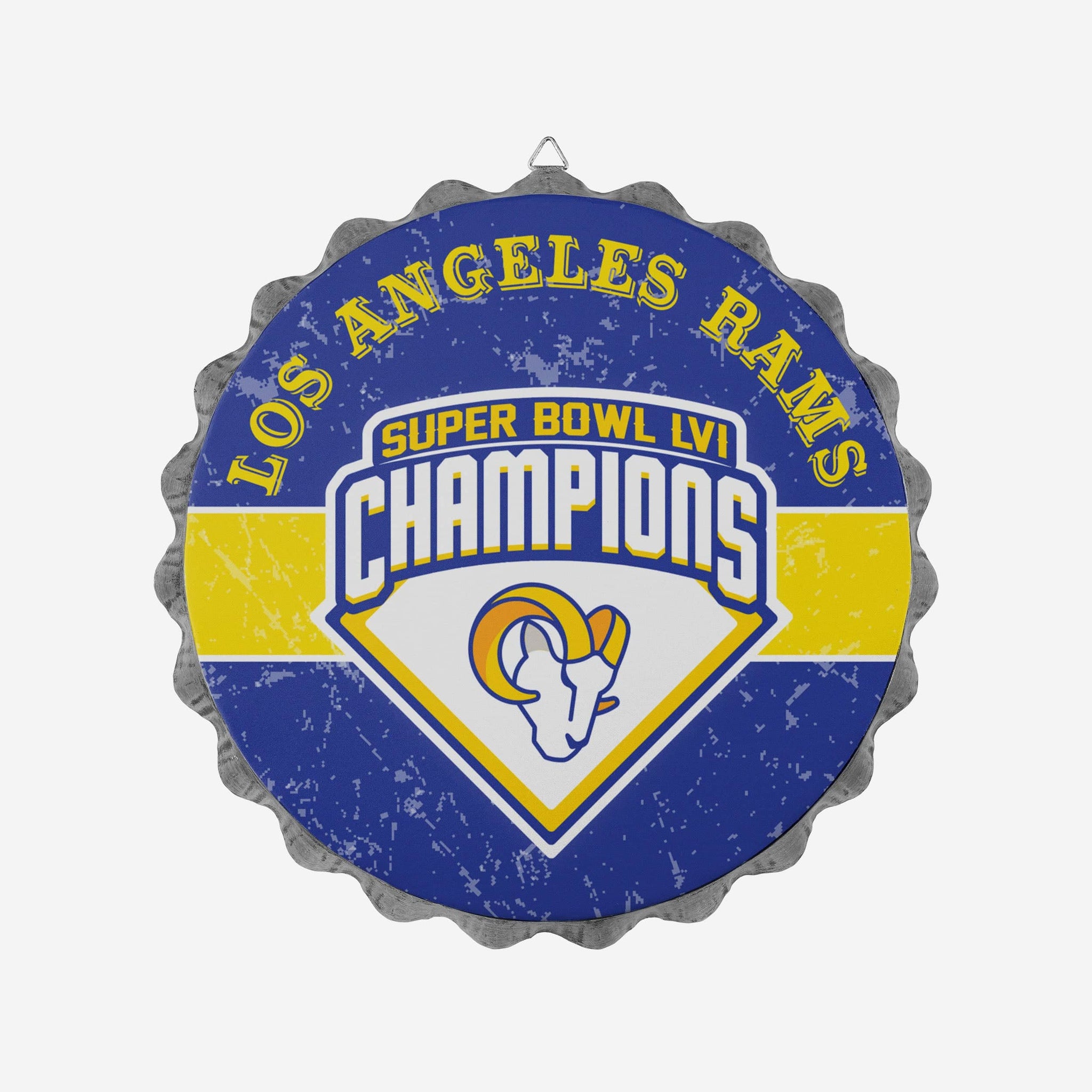 We know your fancave is your sanctuary. This Los Angeles Rams Super Bowl LVI Champions Metal Distressed Bottlecap Wall Sign is here to make sure you've got the most celebratory sanctuary around!
