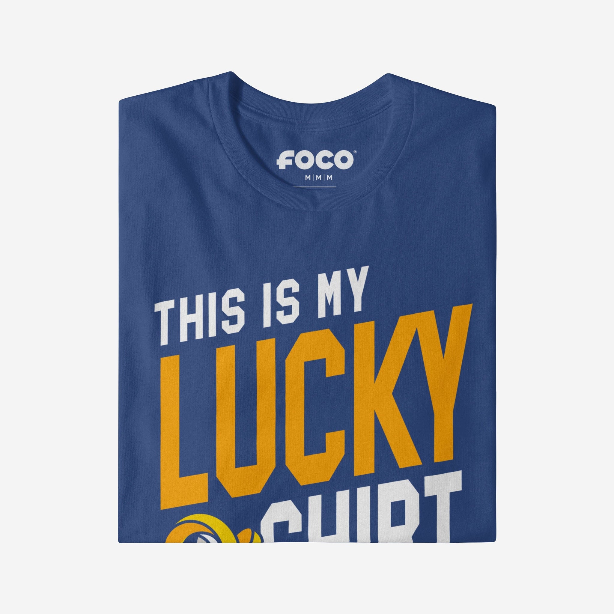 This top features a team logo display and a “THIS IS MY LUCKY SHIRT” text display, meaning this t-shirt will prove your unmatched dedication to the Los Angeles Rams when you’re at the game, out on the town, or watching at home with your friends. No matter where you go, you’ll always have a little luck on your side.
