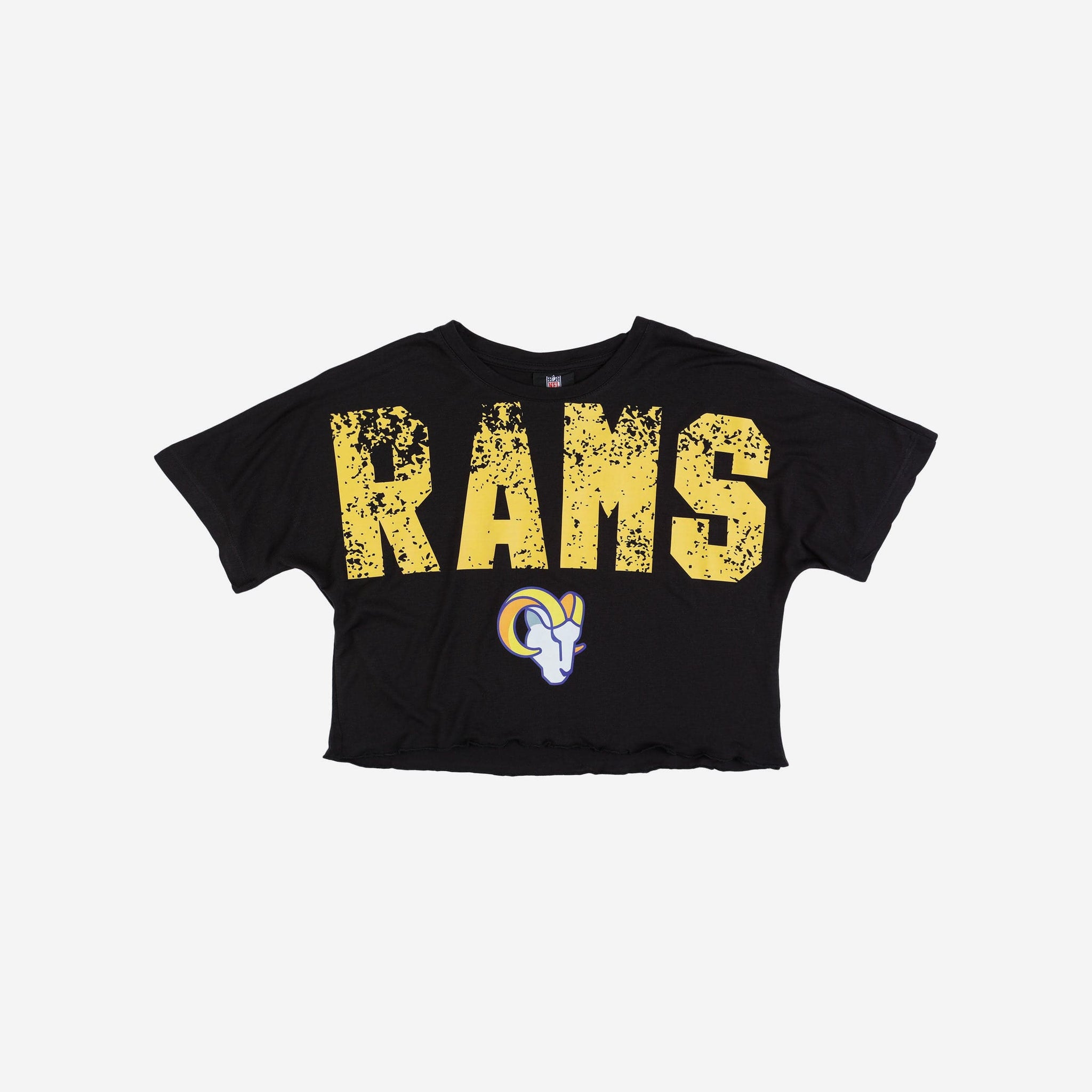 Make sure your fan fashion is nothing short of top of the line. Or should we say "crop top of the line"? Because no one's going to look better than you when you put on this Los Angeles Rams Womens Petite Distressed Wordmark Crop Top.