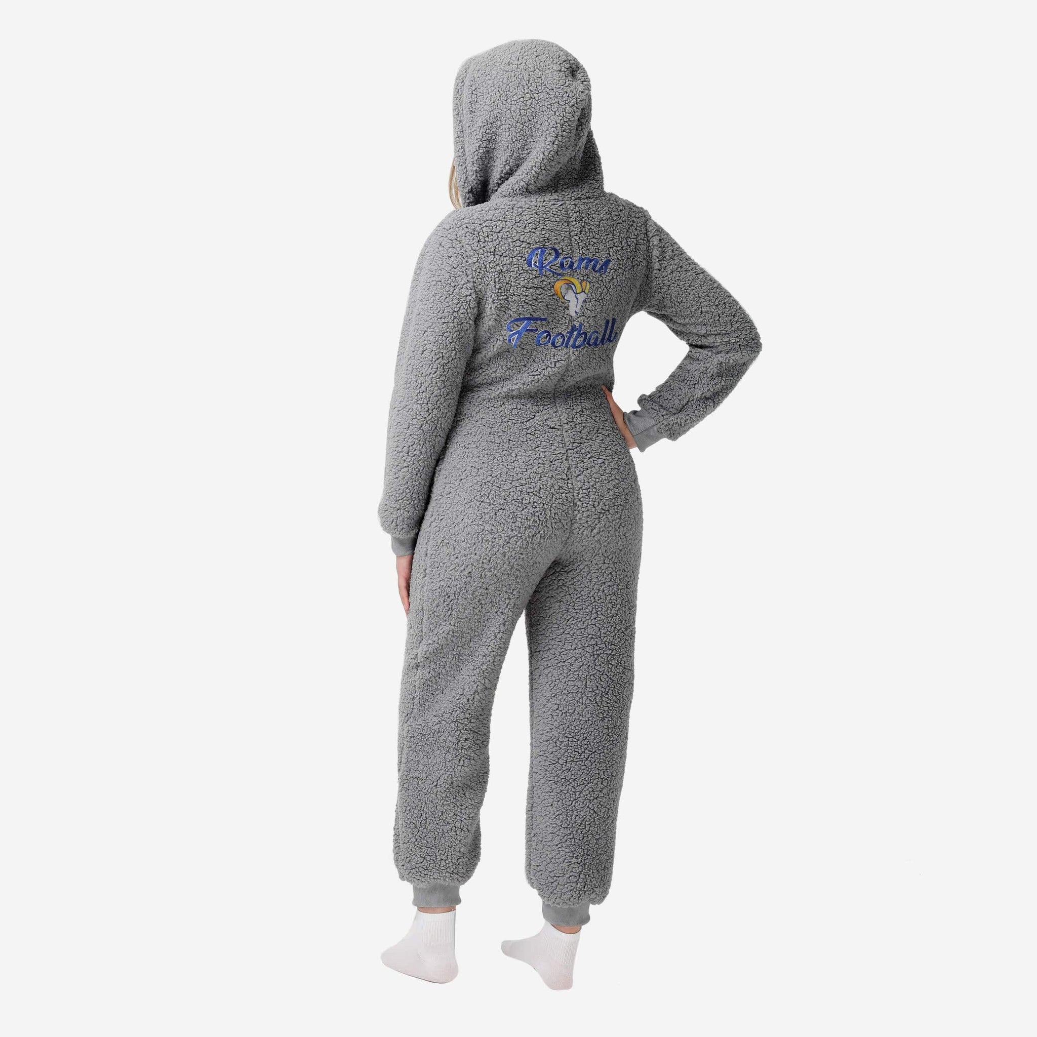 Get some matching family pajamas and dress to impress this holiday season! You won't want to miss these onesie team pajamas! These women's PJ's are comfortable and show off your team spirit in the form of some sweet one piece jammies. Introducing the Los Angeles Rams Women's Sherpa One Piece Pajamas! Don't forget to take your holiday photo with the whole family wearing matching Christmas pajamas!
