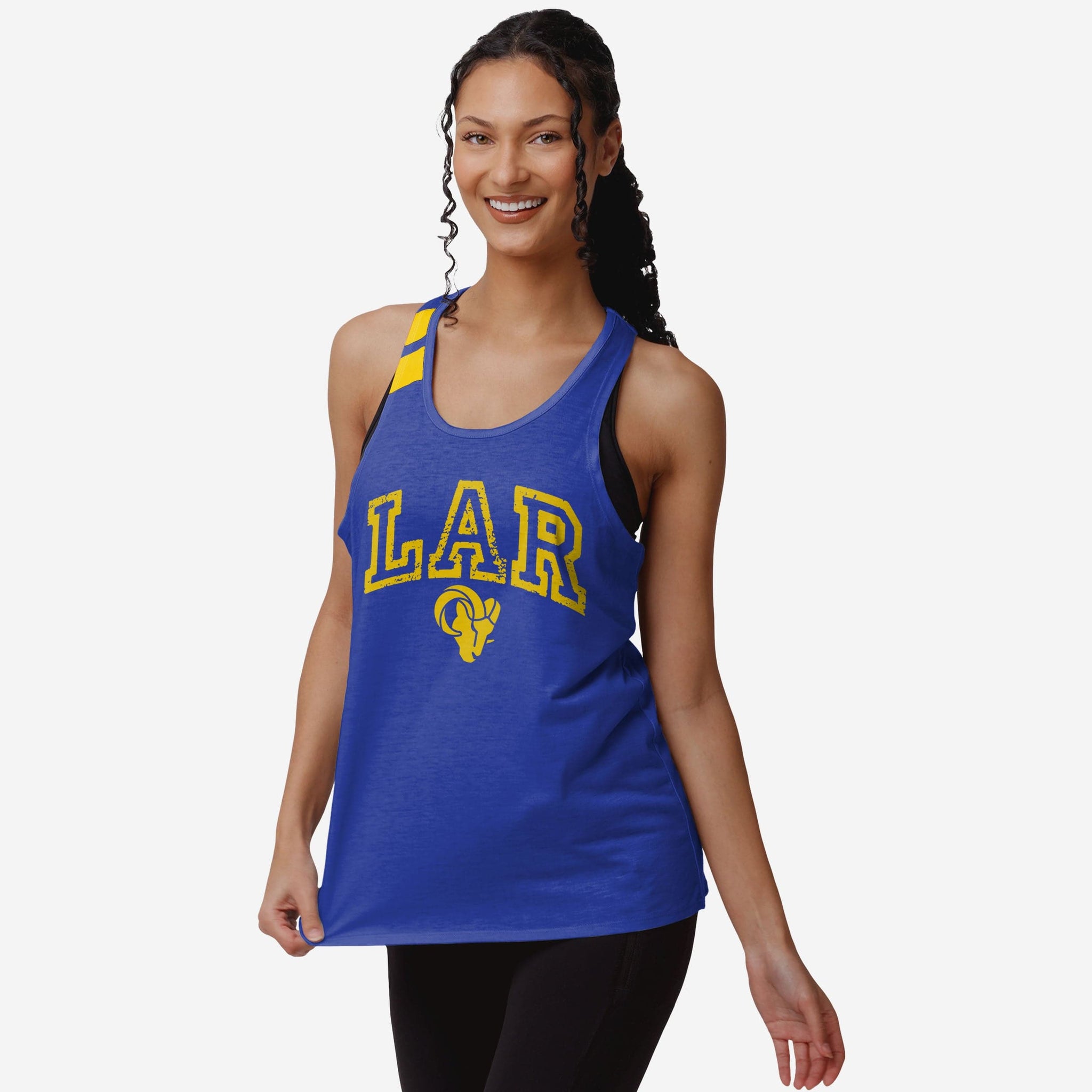 Get ready to flex your fan muscles, with a twist. Literally. This Los Angeles Rams Women's Team Twist Sleeveless Top shows off your team spirit and will have you looking good at the beach, in the gym, or wherever else you feel like showing everyone what a true fan looks like.