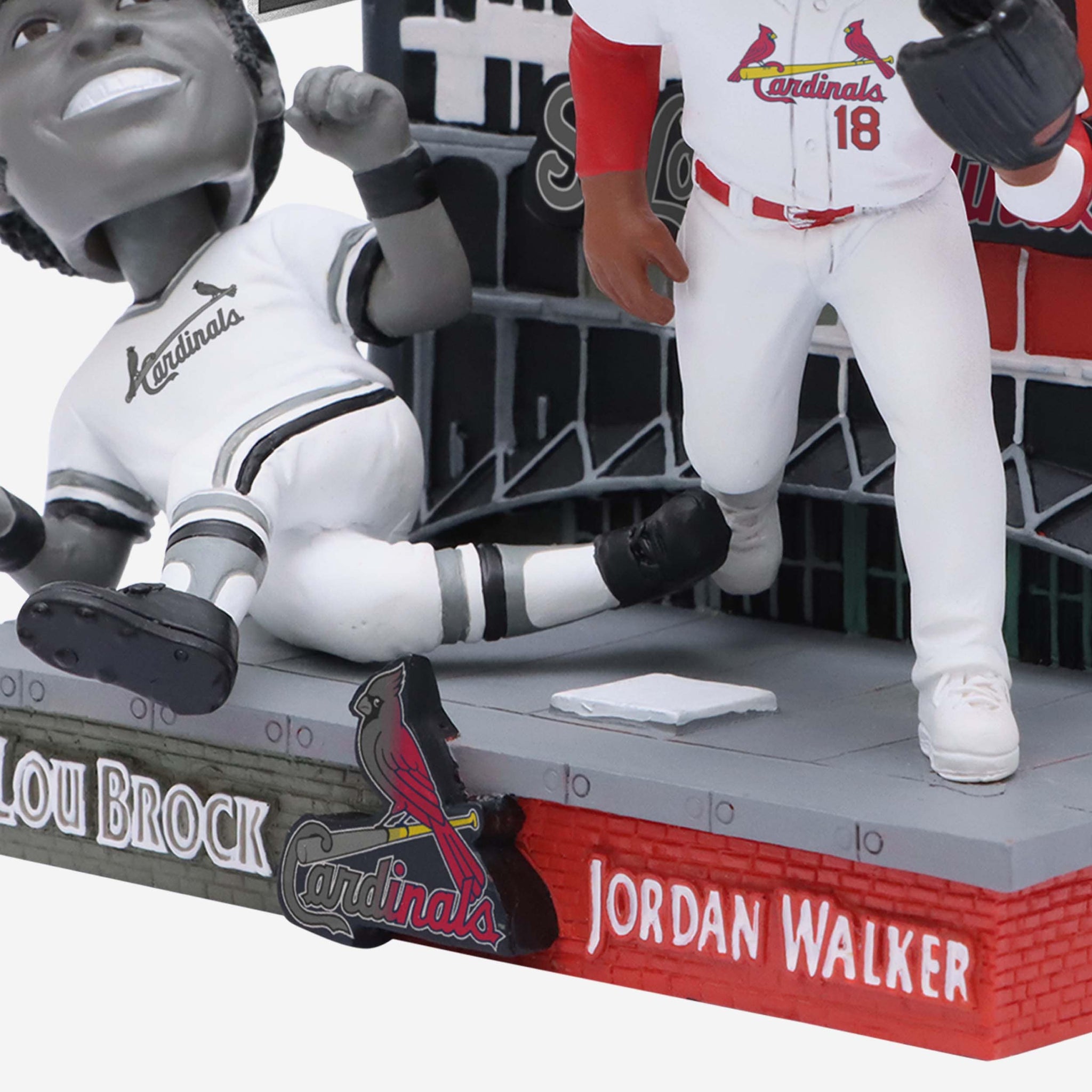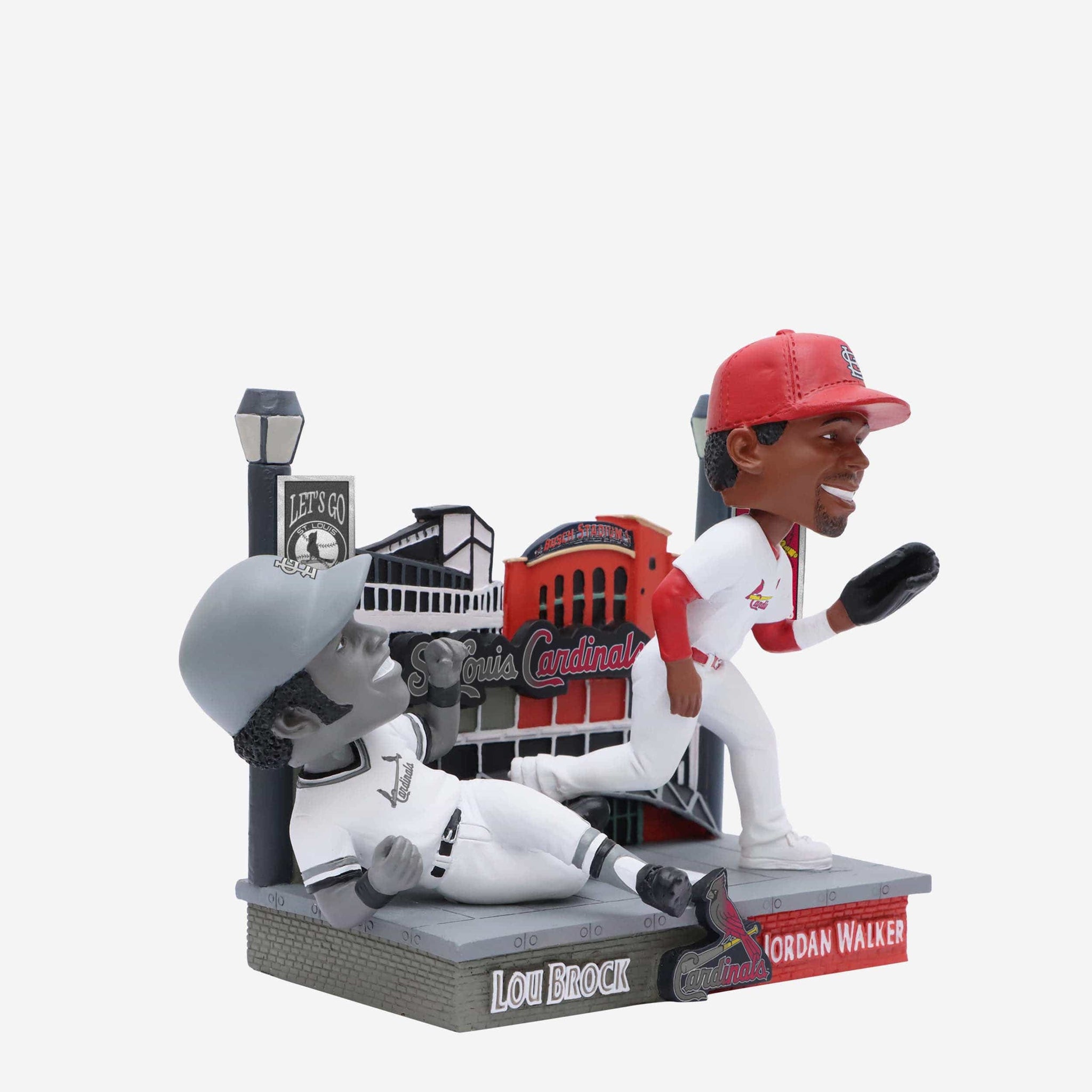 A Gateway City great meets a Cards star in the making. Assemble a timeless outfield duo in your collection with the Lou Brock & Jordan Walker St. Louis Cardinals Then and Now Bobblehead.