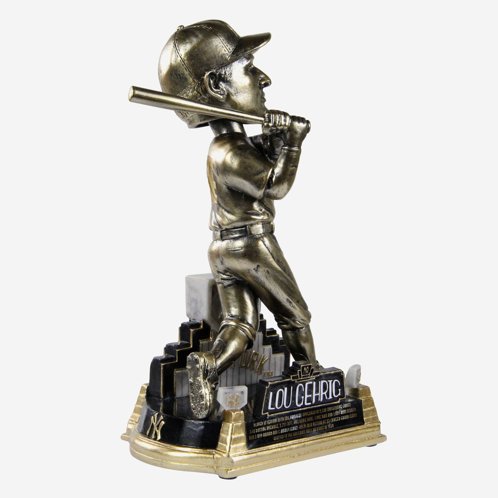 • Portrays a gold-colored Gehrig wearing his gameday uniform in an action pose, because he was as good as gold