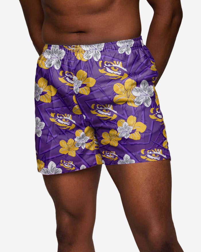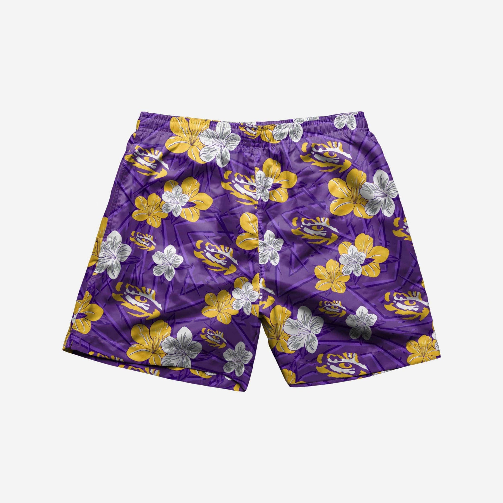 Rock your fandom and say "aloha" to the pool, ocean, lake, hot tub, or whatever body of water you're getting into while you wear these LSU Tigers Hibiscus Swimming Trunks.