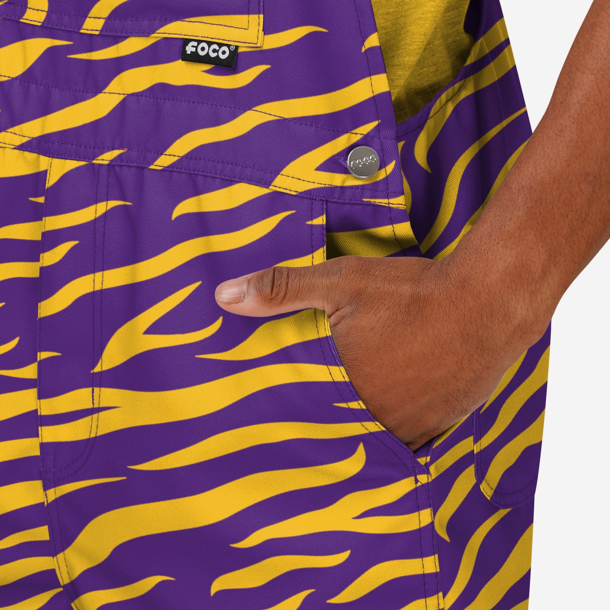 LSU Tigers Mens Tiger Stripe Thematic Bib Shortalls FOCO S - FOCO.com