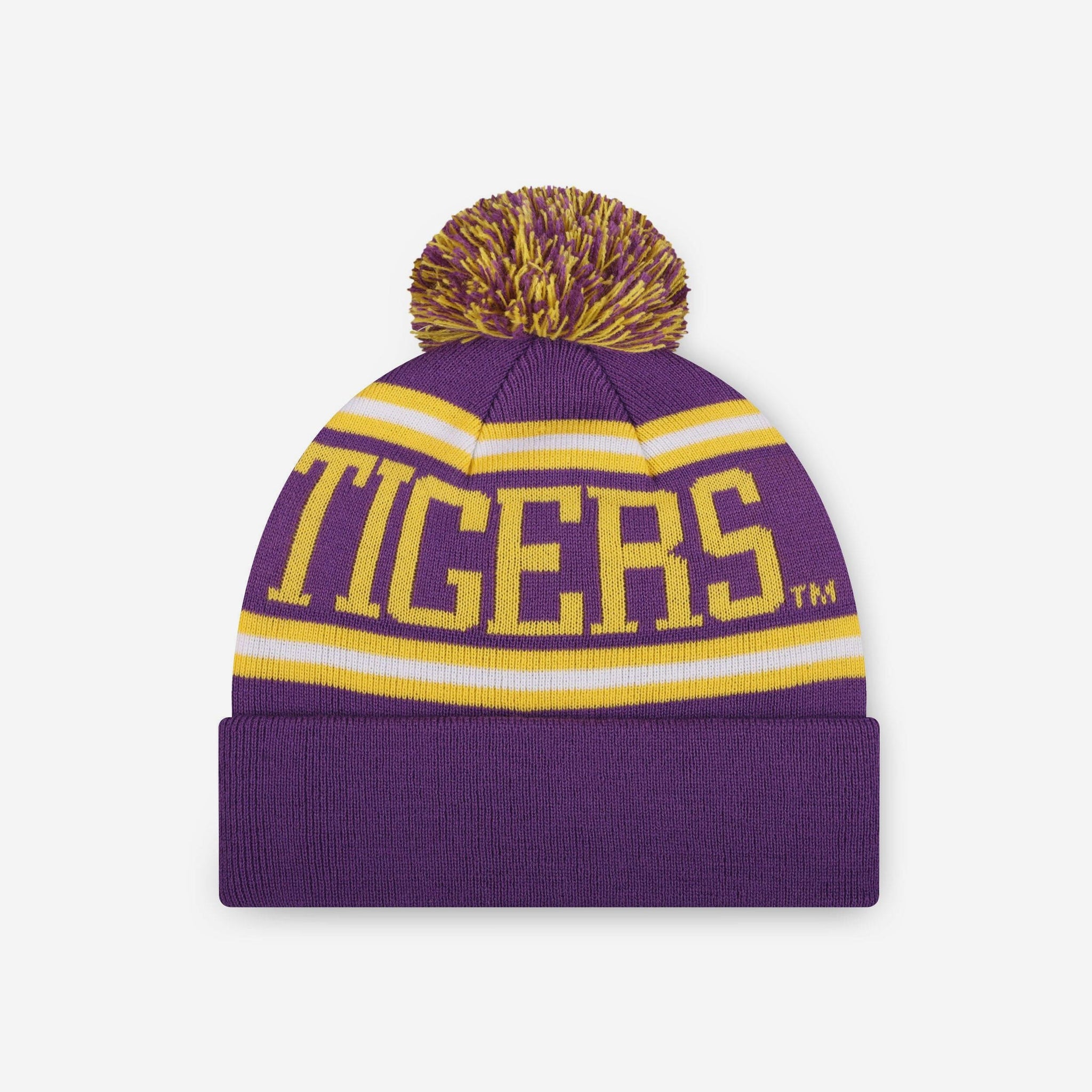 Heads up! This LSU Tigers Primary Logo Stripe Pom Beanie is so cozy, you might not want to take it off at all this winter.