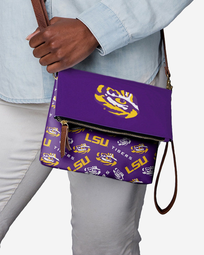 You carry your team spirit with you wherever you go. Shouldn't your bag do the same? (Hint: The answer is a resounding ABSOLUTELY) We've got you covered. Just carry your stuff in this LSU Tigers Printed Collection Foldover Tote Bag and you'll be good to go.