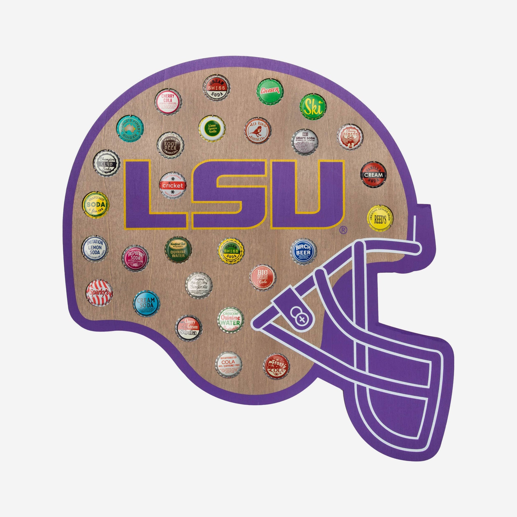 Cap off your fancave decorating and keep track of every cold one you crack while watching the game with this LSU Tigers Push Bottle Cap Wall Sign.