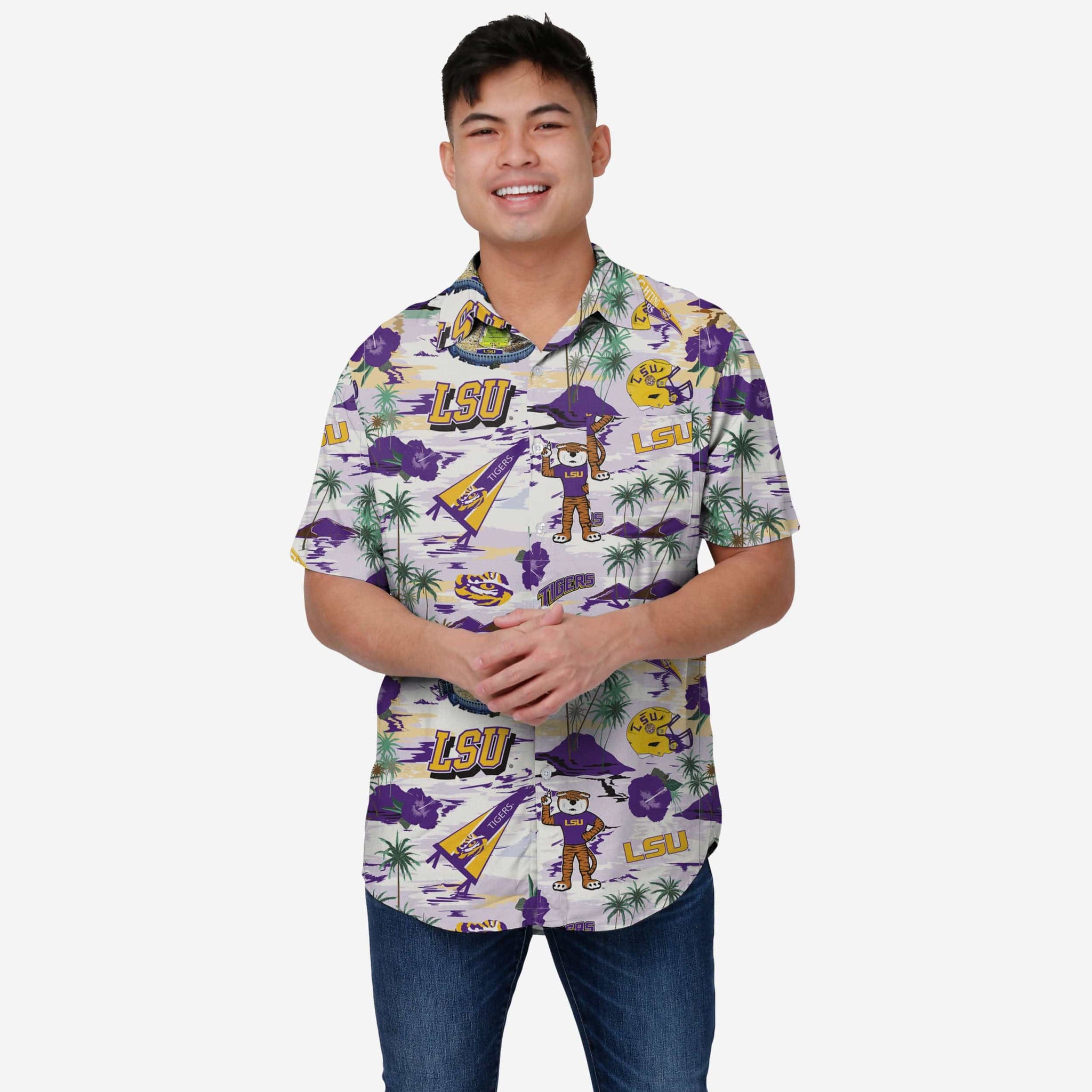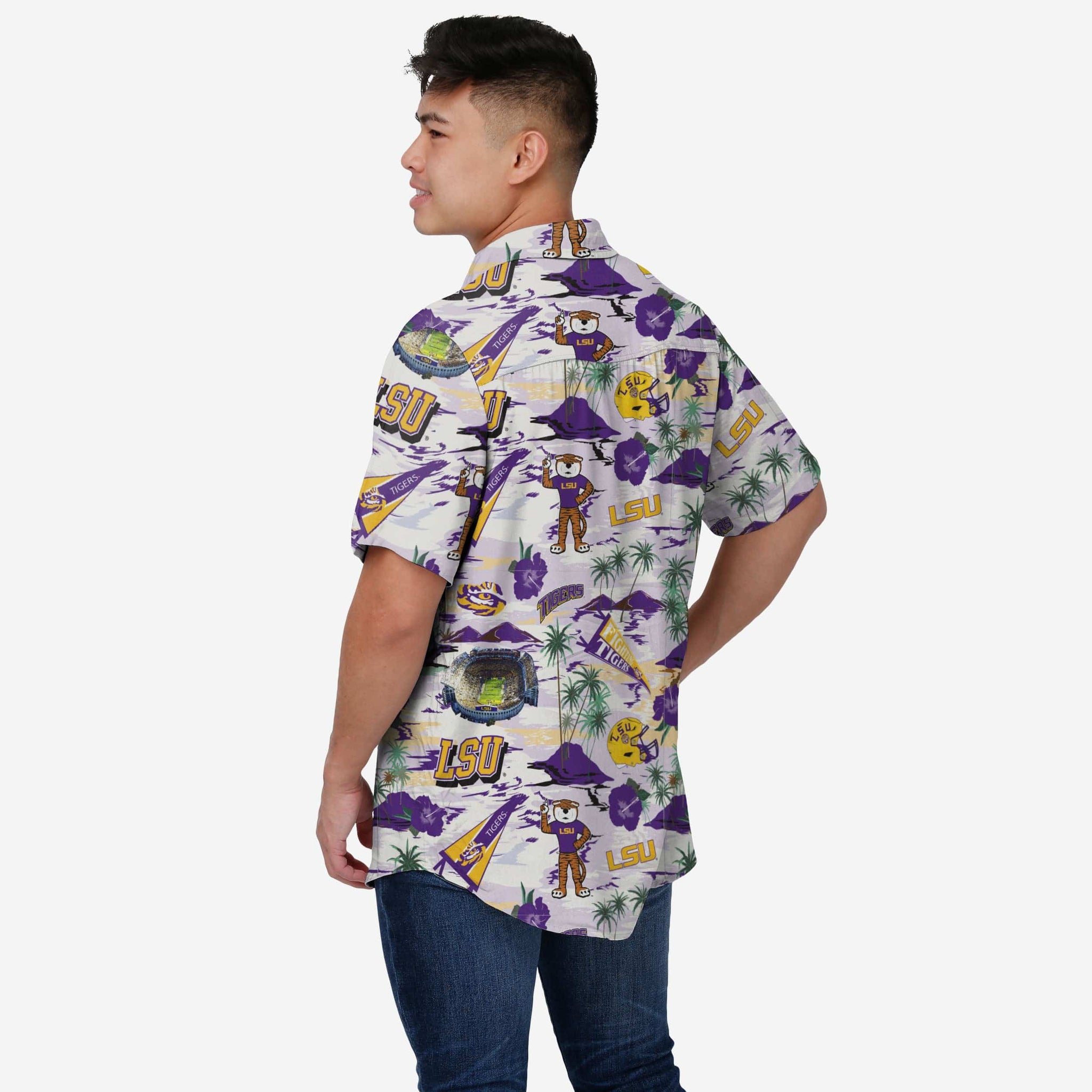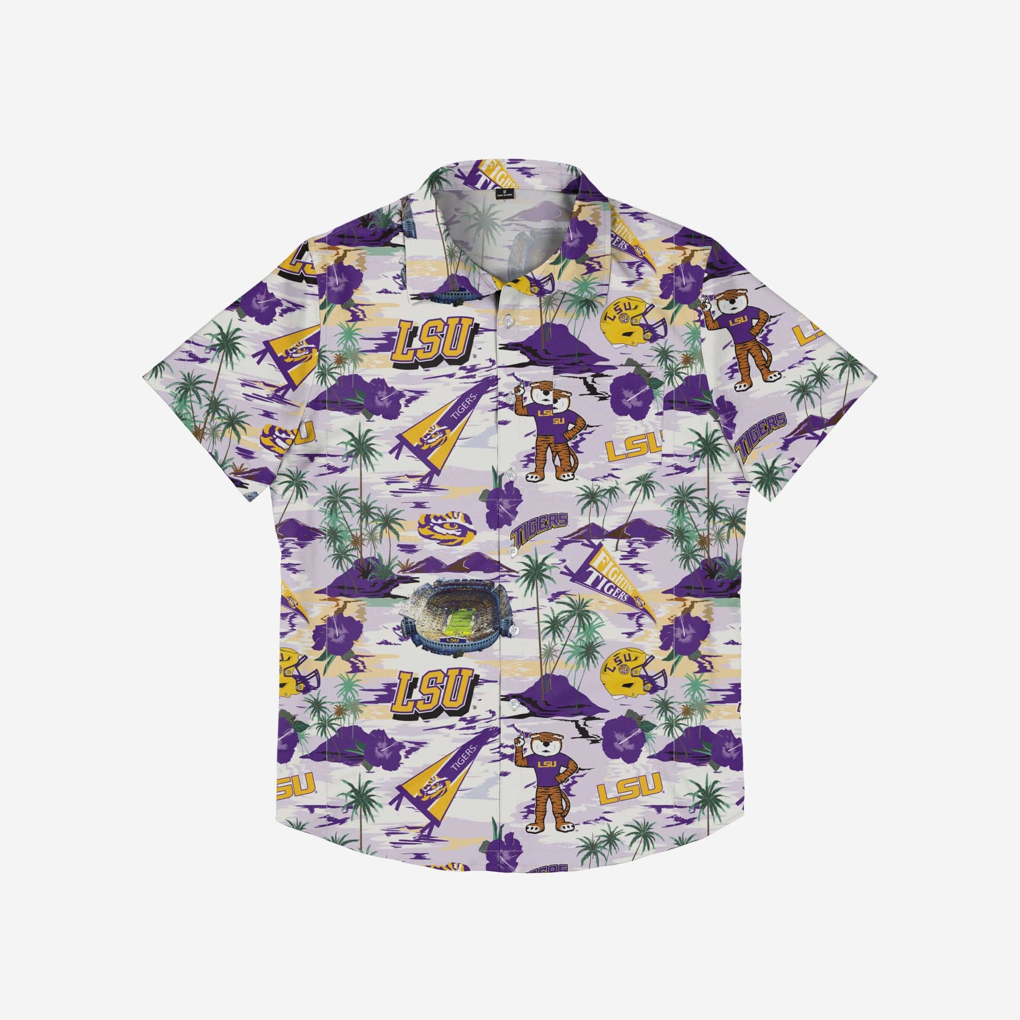 The game. The pool. The tailgate. The vacation spot. These are just a few places where you'll want to stylishly rep your team on the go in this LSU Tigers Thematic Stadium Print Button Up Shirt!