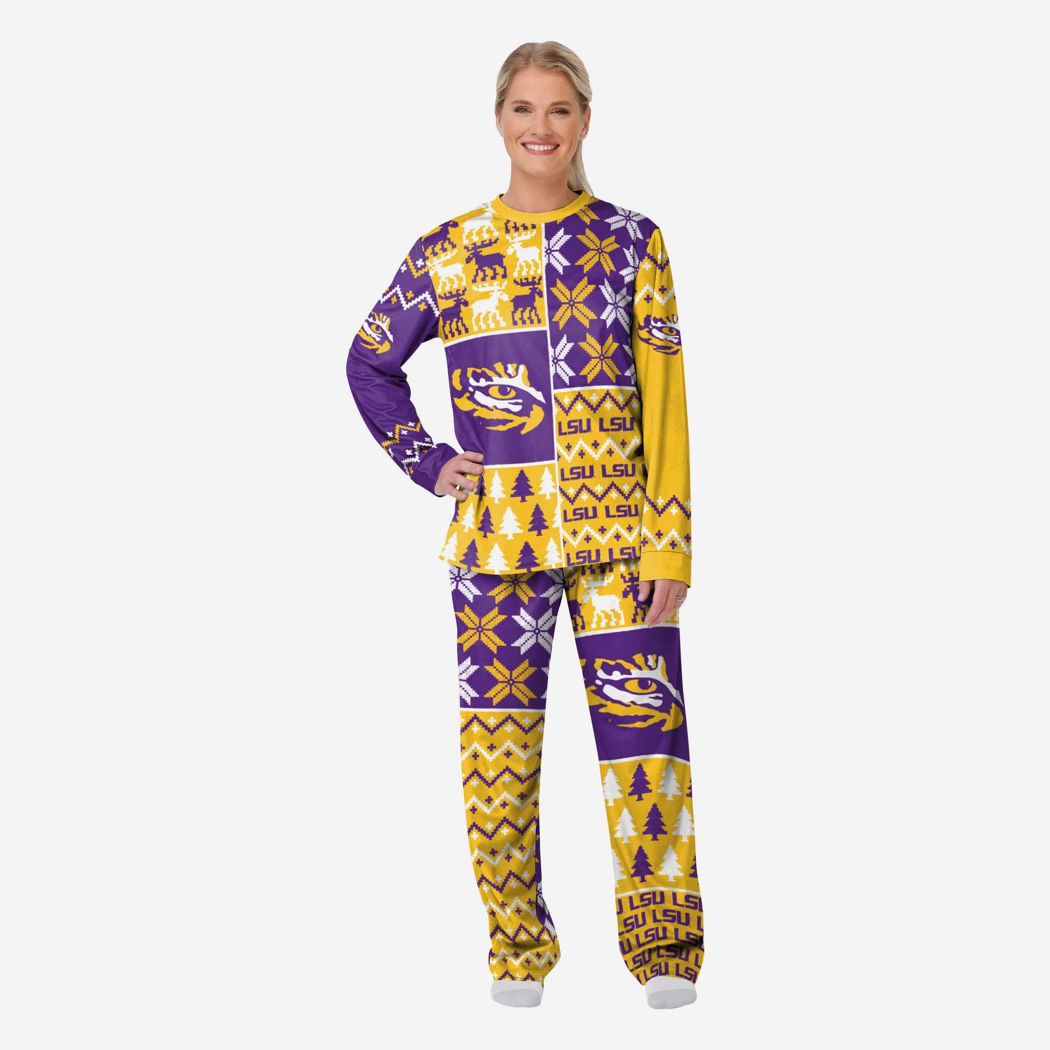LSU Tigers Womens Busy Block Family Holiday Pajamas FOCO S - FOCO.com