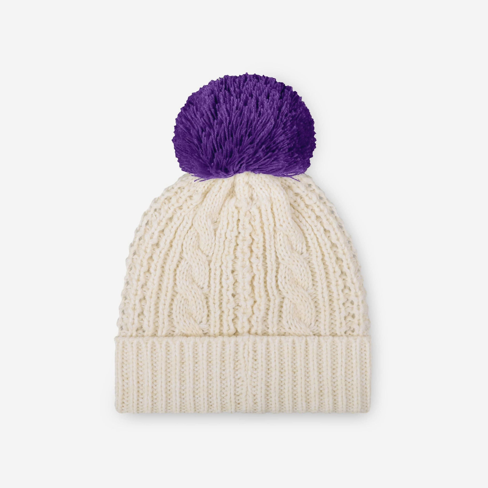 LSU Tigers Womens Primary Logo White Cable Knit Pom Beanie