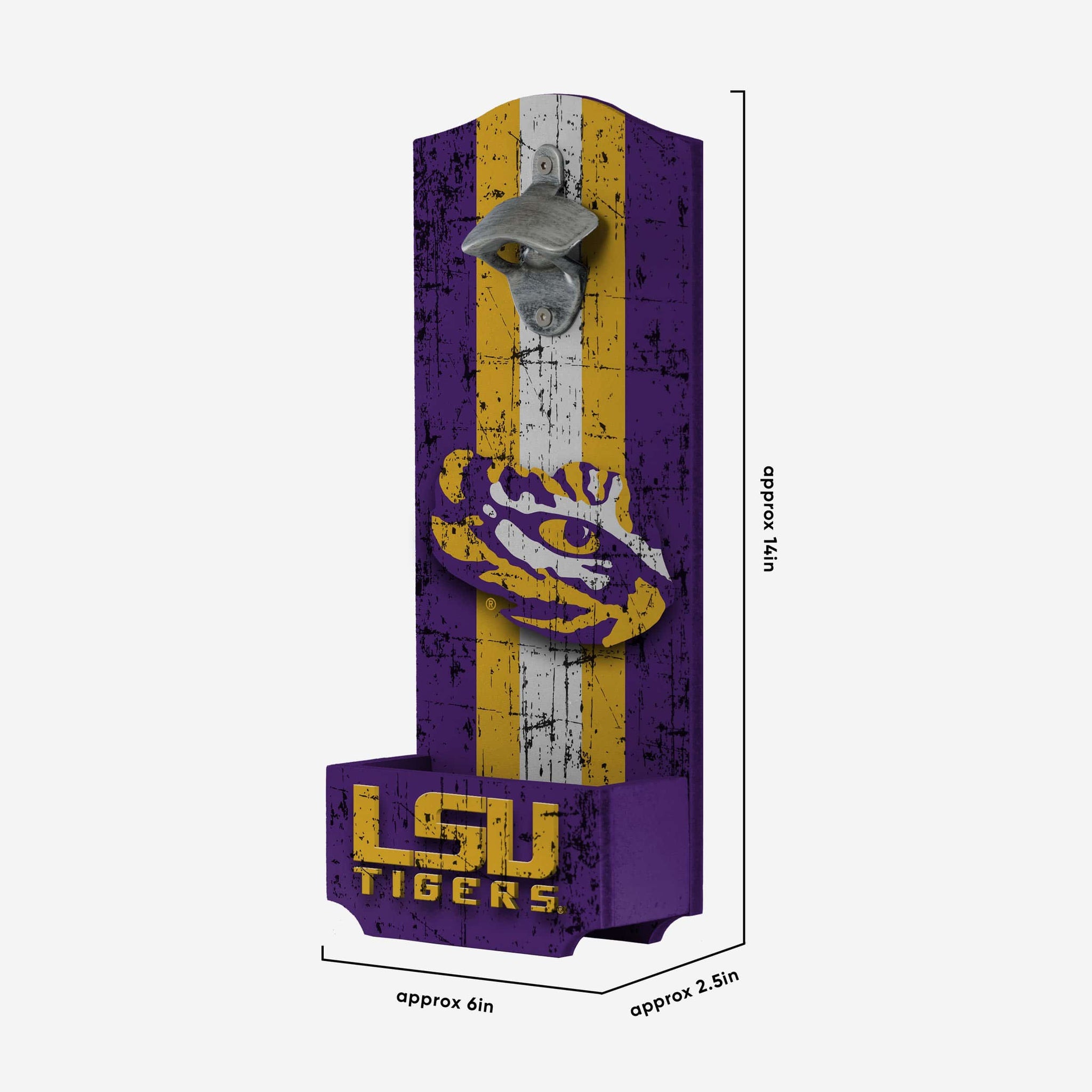 Don't miss a second of the action on gameday. Just use this LSU Tigers Wooden Bottle Cap Opener Sign to crack open another cold one and focus on watching your team dominate!