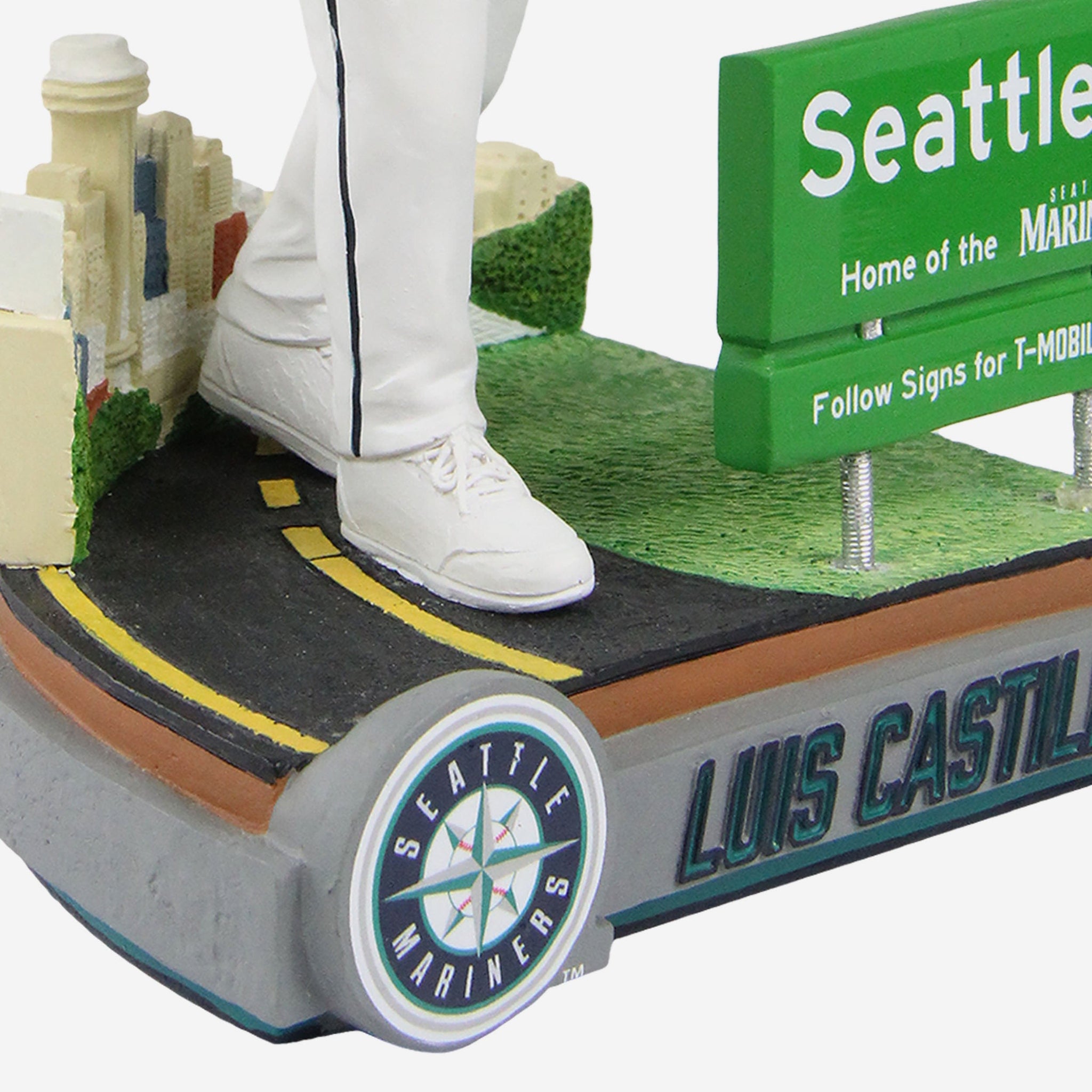 We know it can be a little rainy and chilly in Seattle. But that's not enough to stop this Luis Castillo Seattle Mariners Next Stop Bobblehead from bringing the heat.