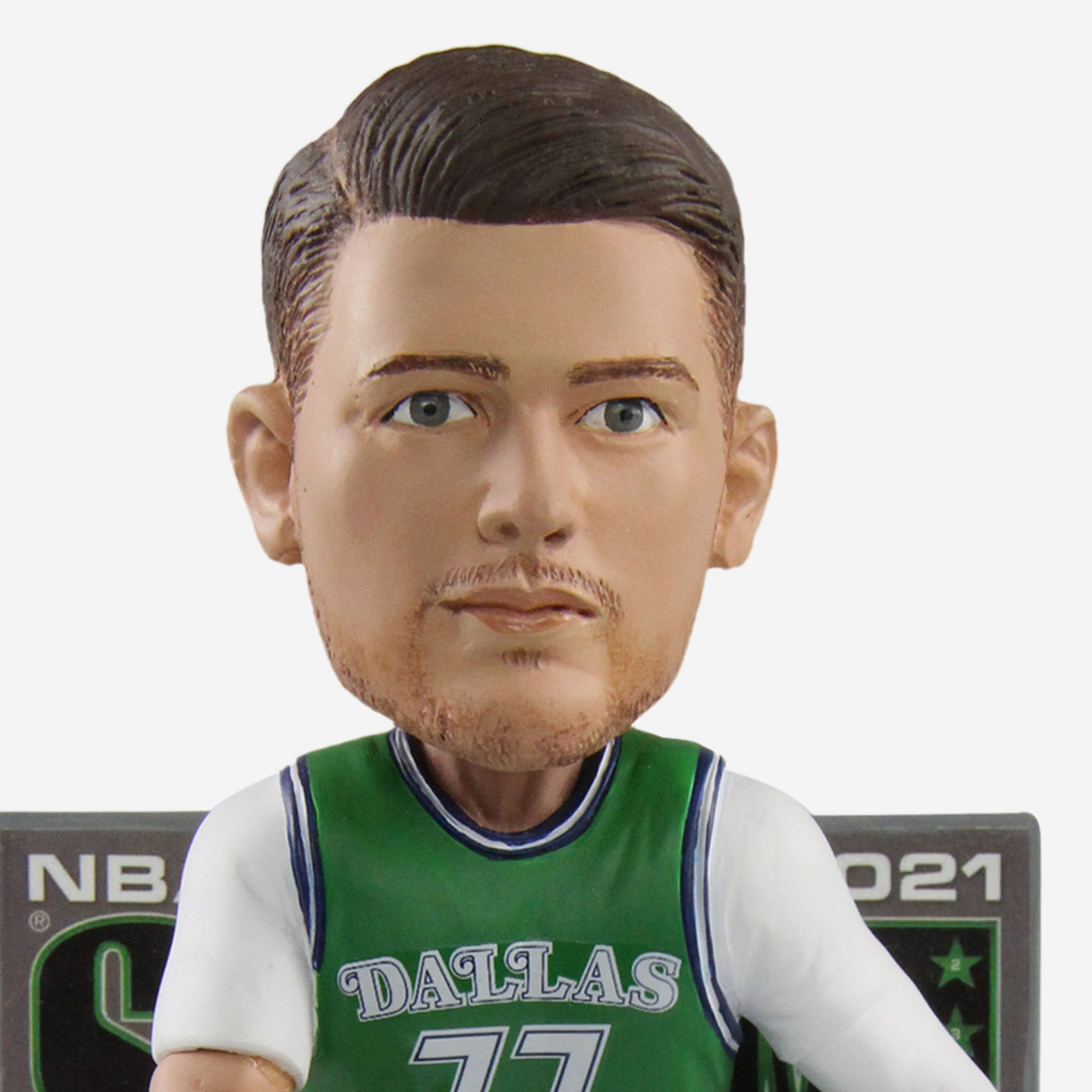 - Portrays Doncic posing with a basketball in his throwback retro Mavs gameday uniform, ready to dominate the game