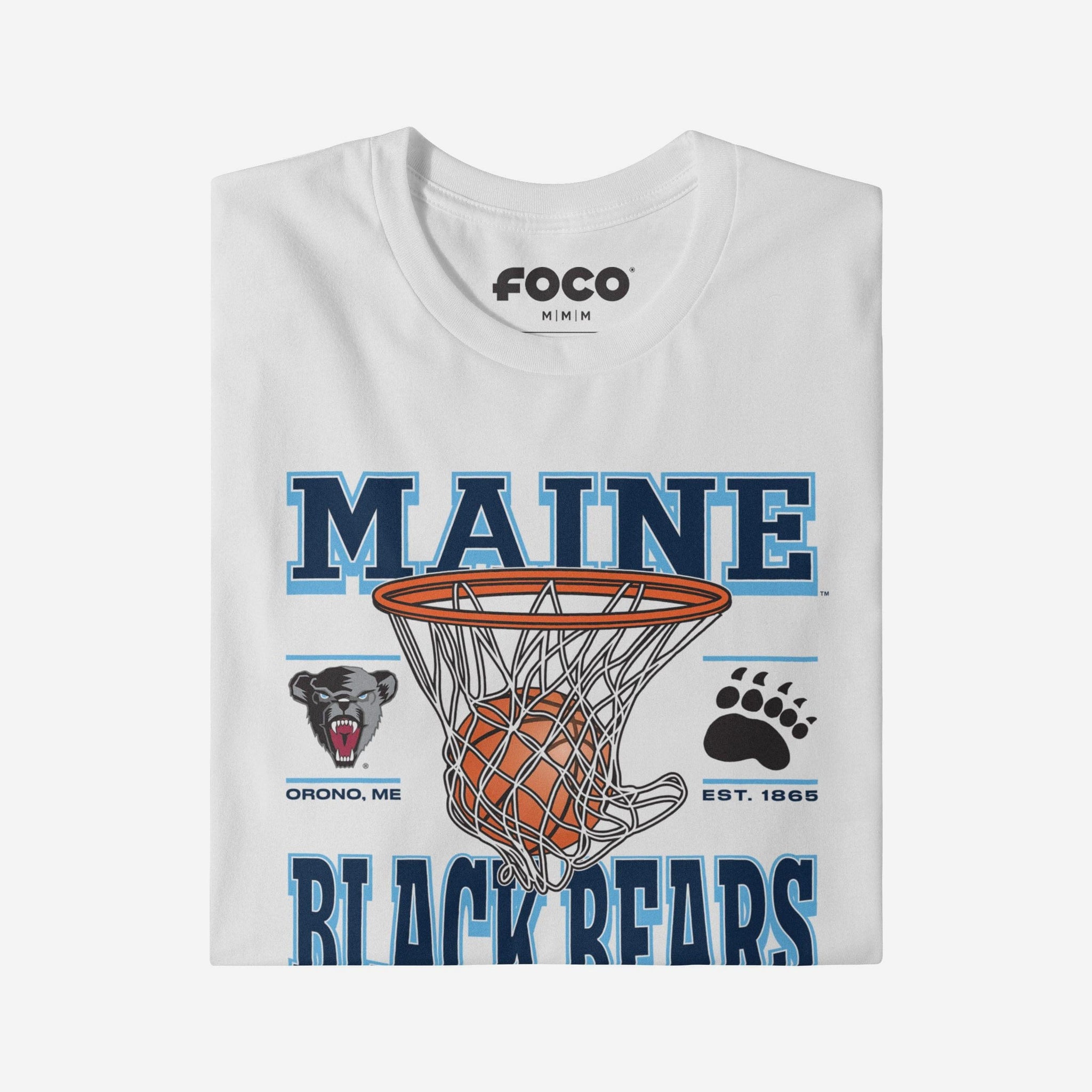 This top features a design that showcases your all-important team colors, a team logo display, a team wordmark name display, year of team establishment, and a basketball swishing through a net display meaning this t-shirt will prove your unmatched dedication to the Maine Black Bears when you're at the game or watching at home. In other words, this graphic tee is about to be your new favorite teammate.