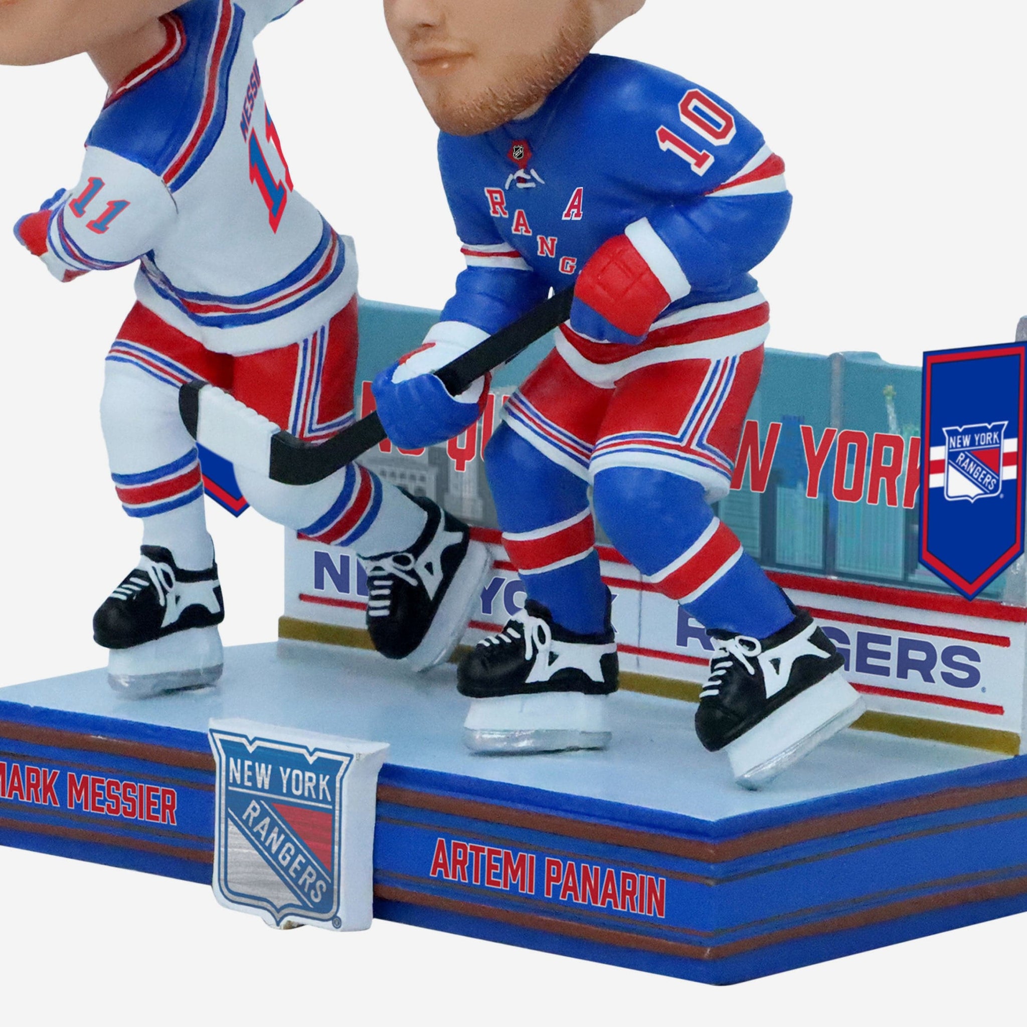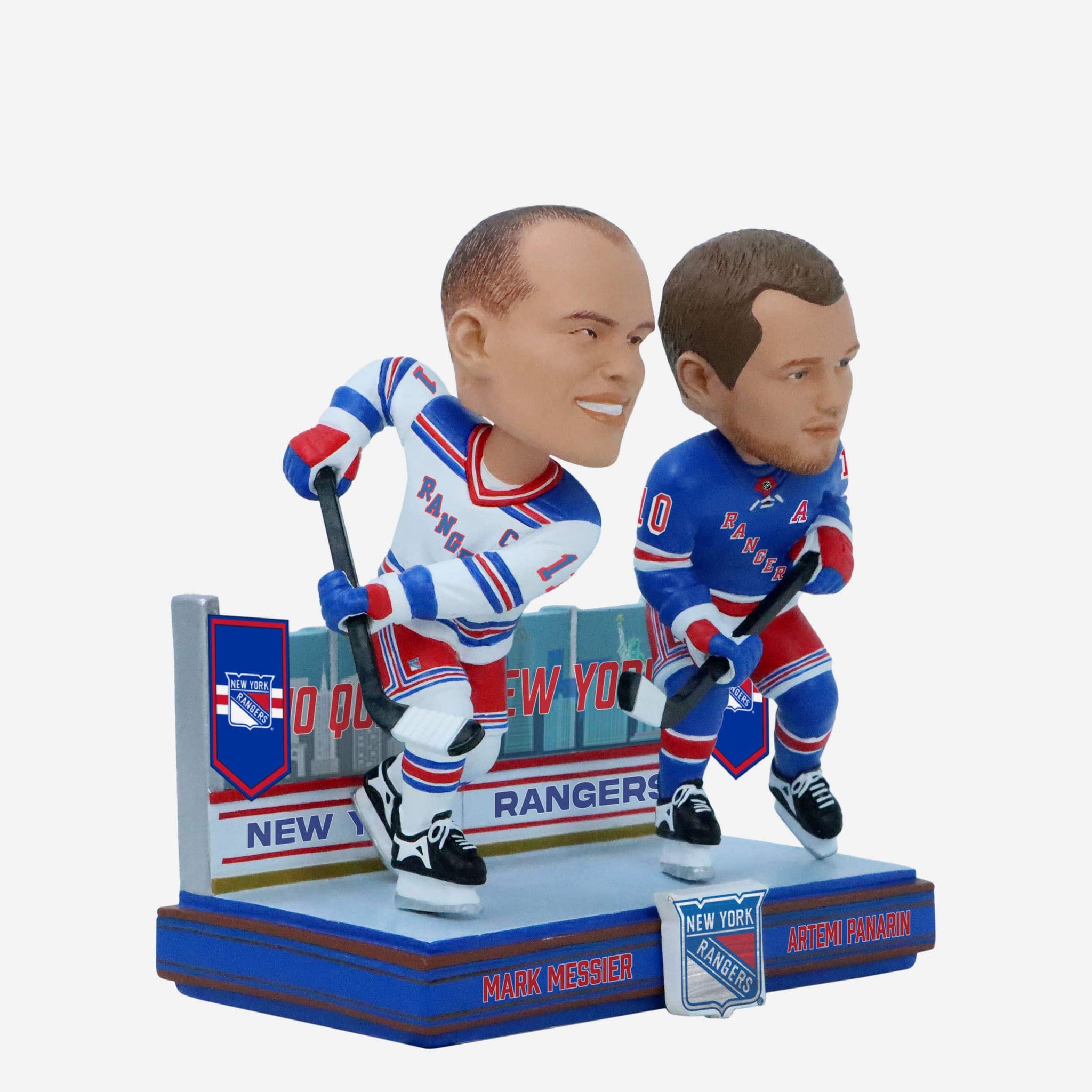 Shine under the bright lights of Broadway! Whether you cherish the Rangers of years past or you're cheering on the exciting team of today, this Mark Messier & Artemi Panarin New York Rangers Then and Now Bobblehead is just what you're looking for.