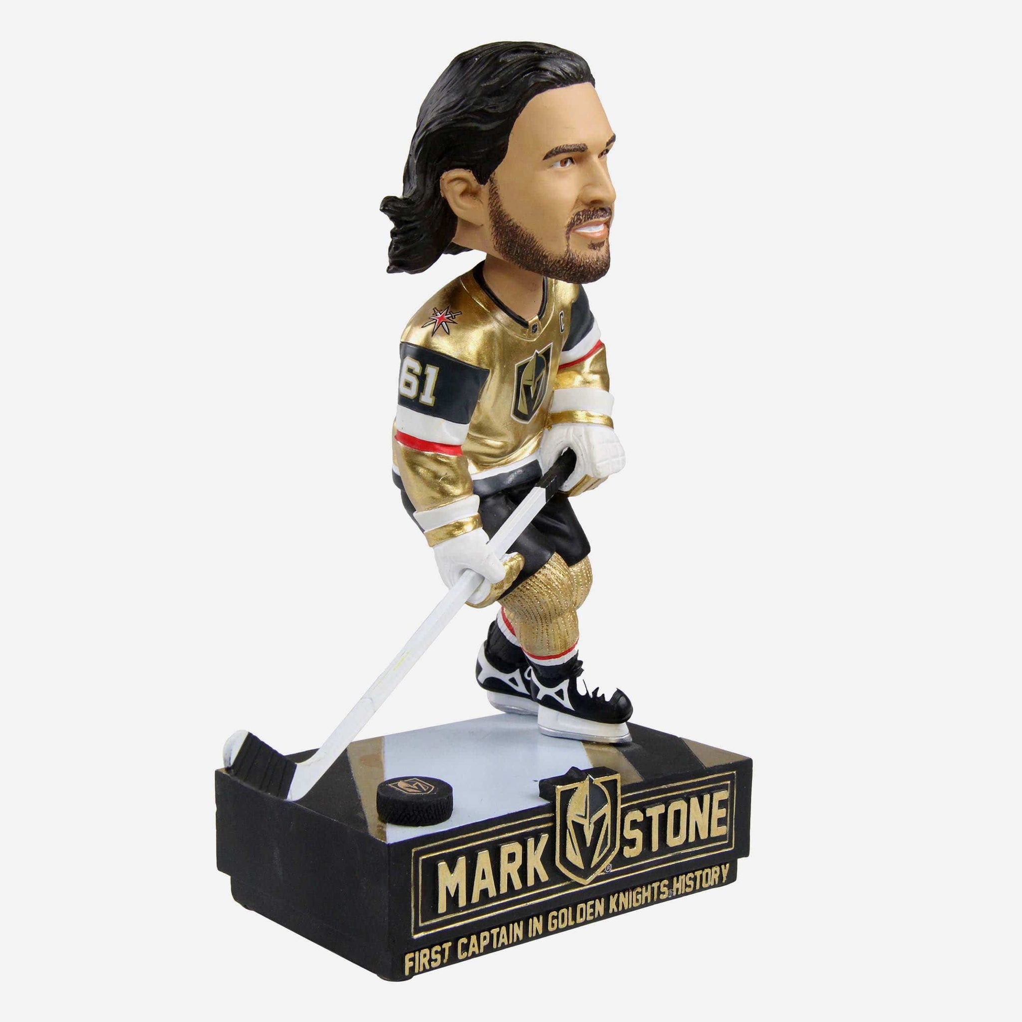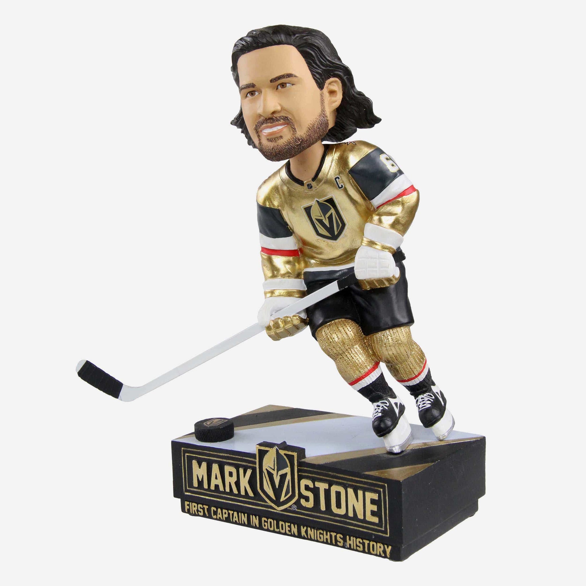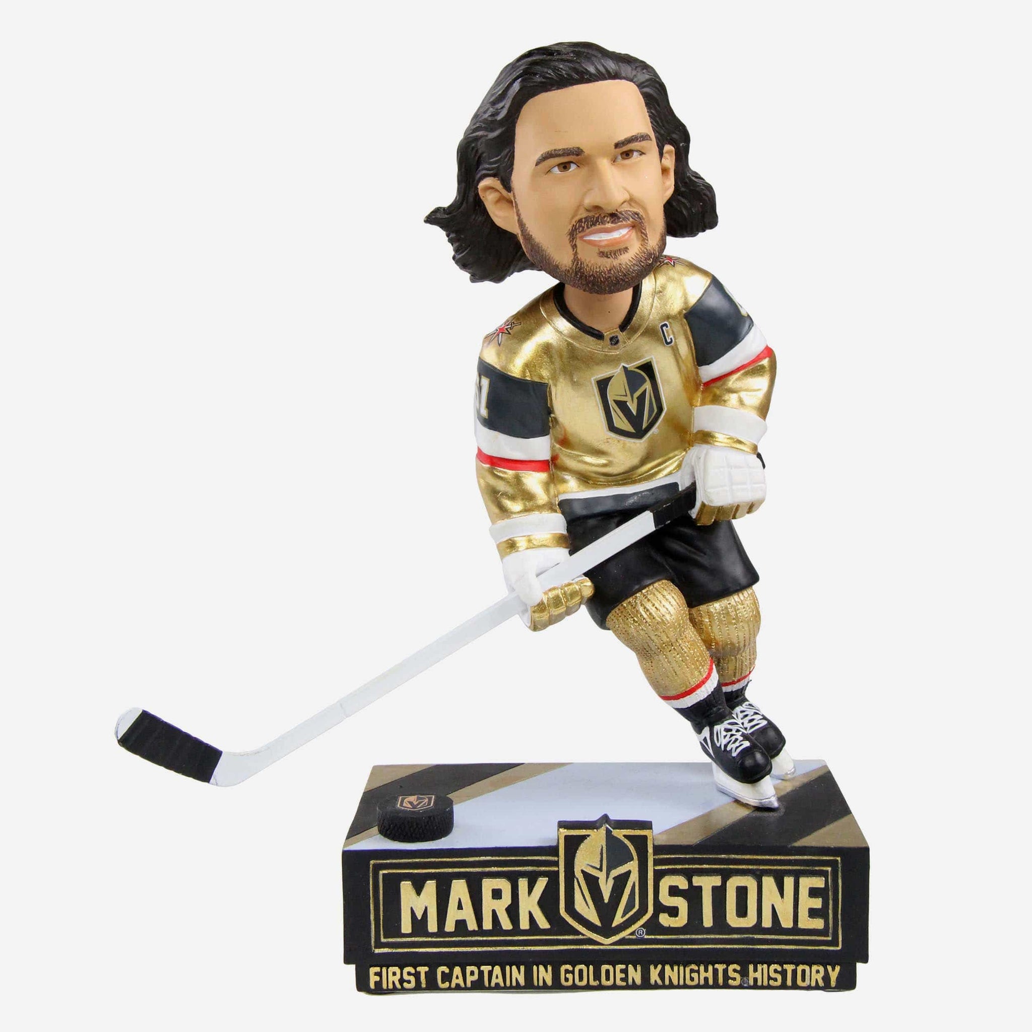 O captain, my captain! All that glitters is very much gold when you celebrate the franchise's first-ever captain by adding this Mark Stone Vegas Golden Knights First Captain Bobblehead to your collection!