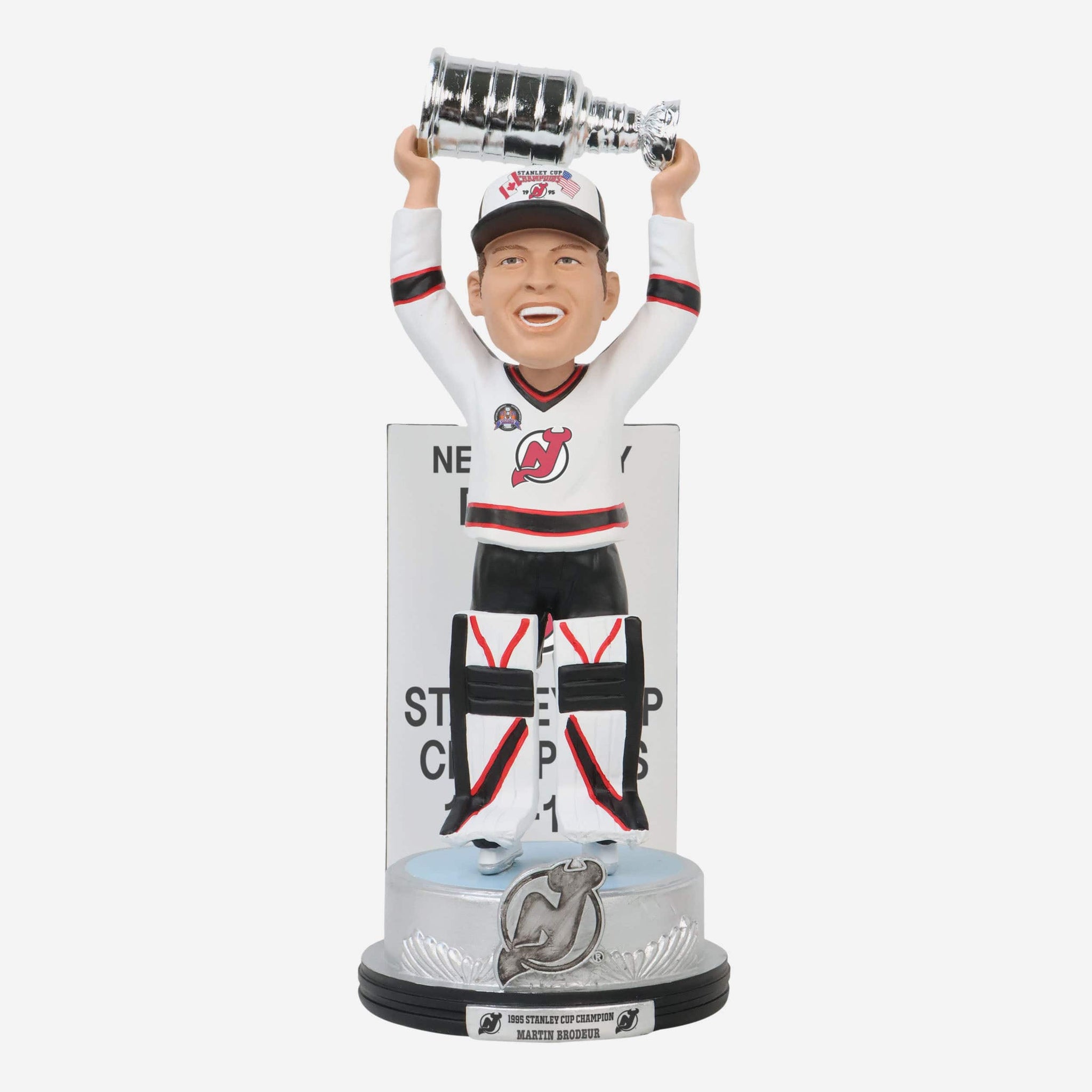 - Portrays Brodeur wearing his white gameday uniform and championship cap while lifting the Stanley Cup trophy, because no championship celebration is complete without a little hardware
