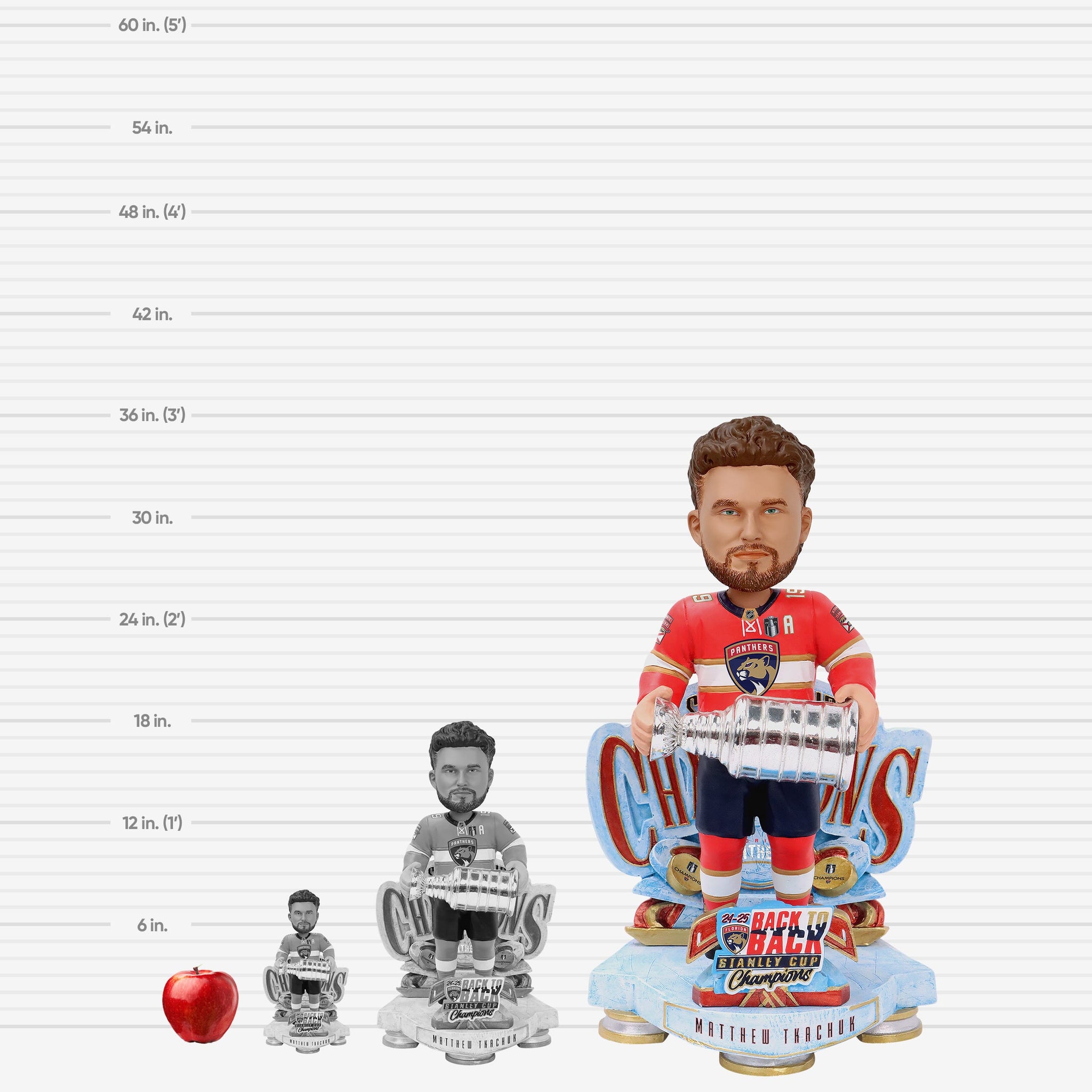 Stanley Cup Champions! Take your celebration and your bobble collection to new heights - literally - with this Matthew Tkachuk Florida Panthers 2025 Back To Back Stanley Cup Champions Celebration 3 Ft Bobblehead.