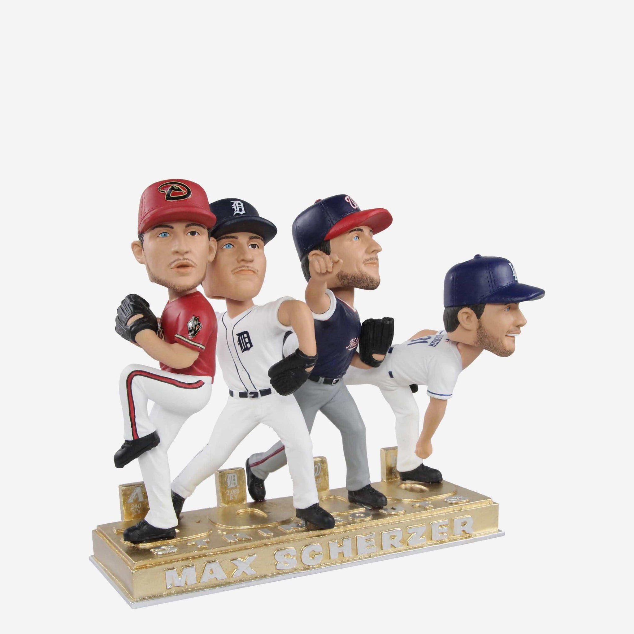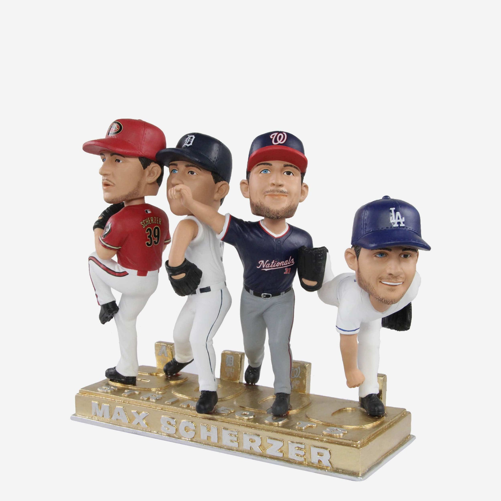 - Scene portrays four figures of Scherzer in his Arizona Diamondbacks, Detroit Tigers, Washington Nationals, and Los Angeles Dodgers gameday uniforms for a quadruple dose of greatness