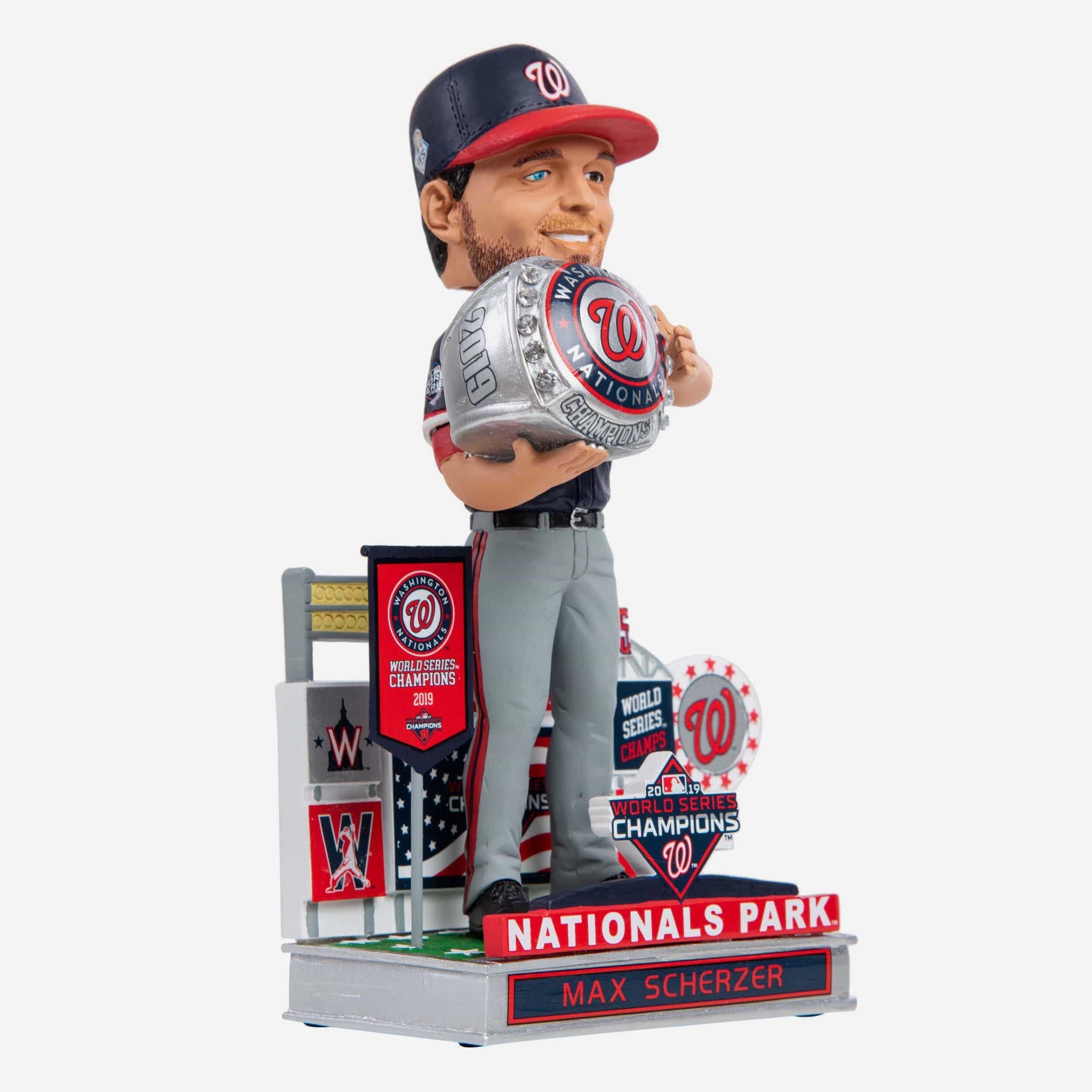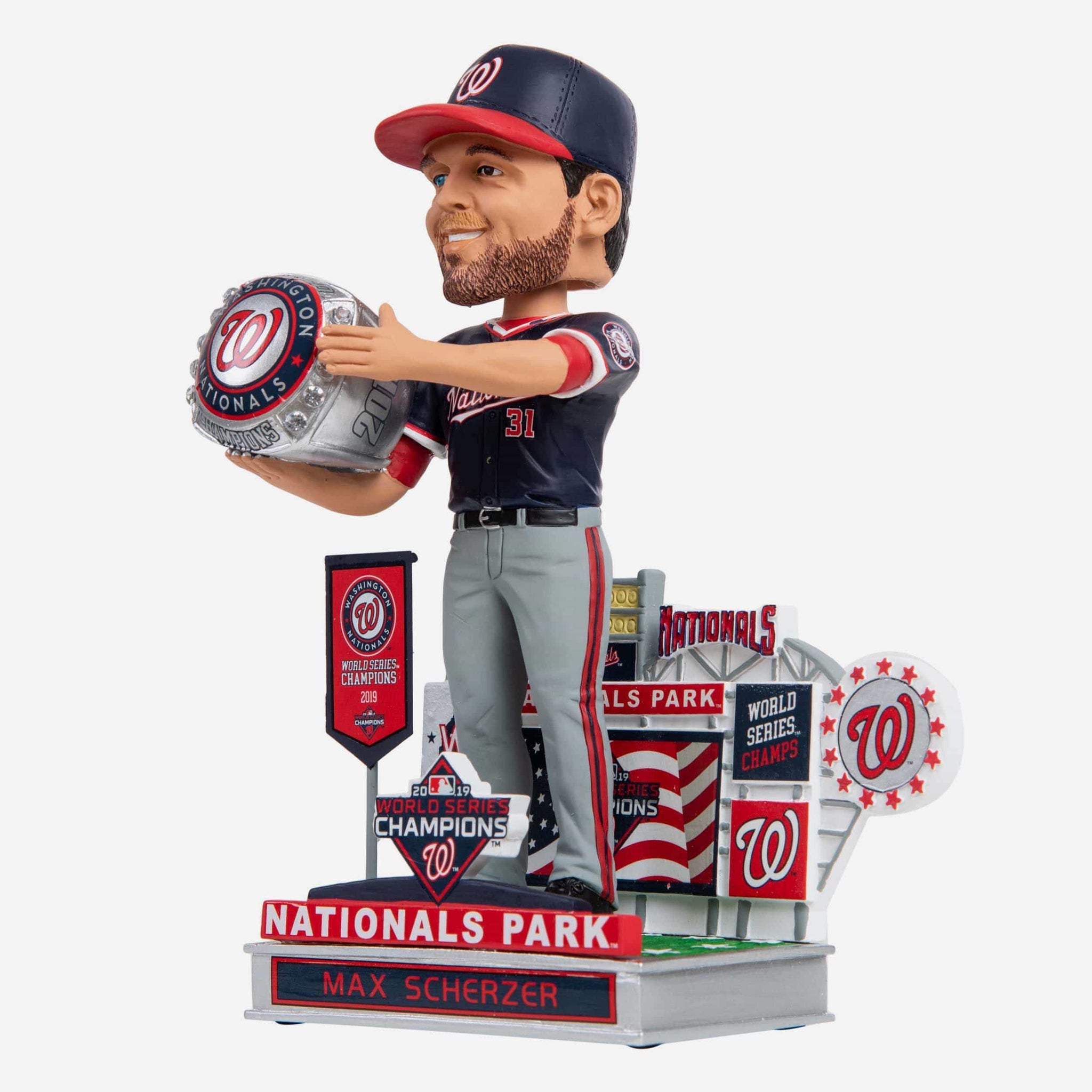 Nats fans, nothing beats the energy of a banner raising ceremony. Nothing except this Max Scherzer Washington Nationals Banner Ceremony Bobblehead. We packed all the natitude of the real thing into this bobblehead, so you can enjoy your own personal banner ceremony from the comfort of your desk.