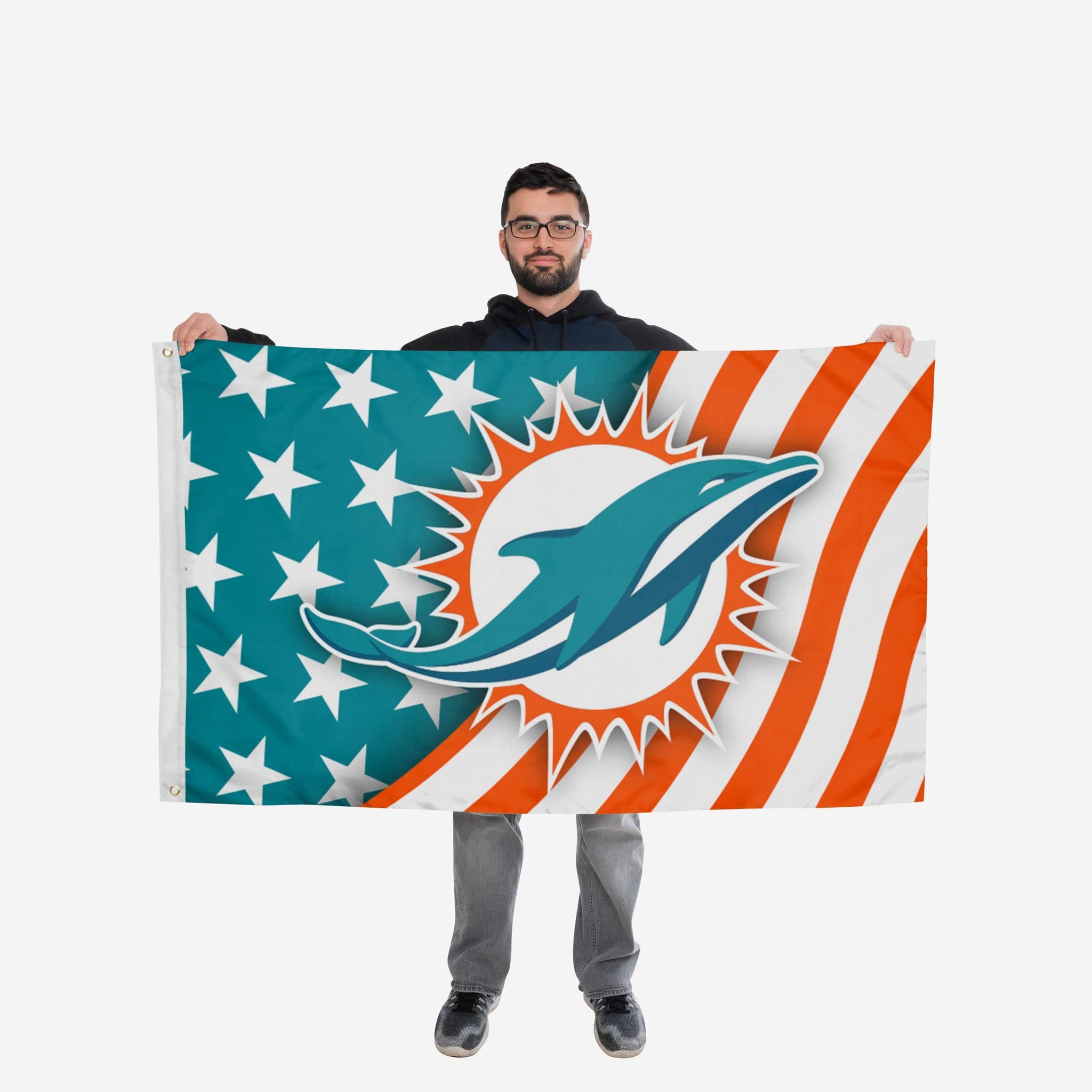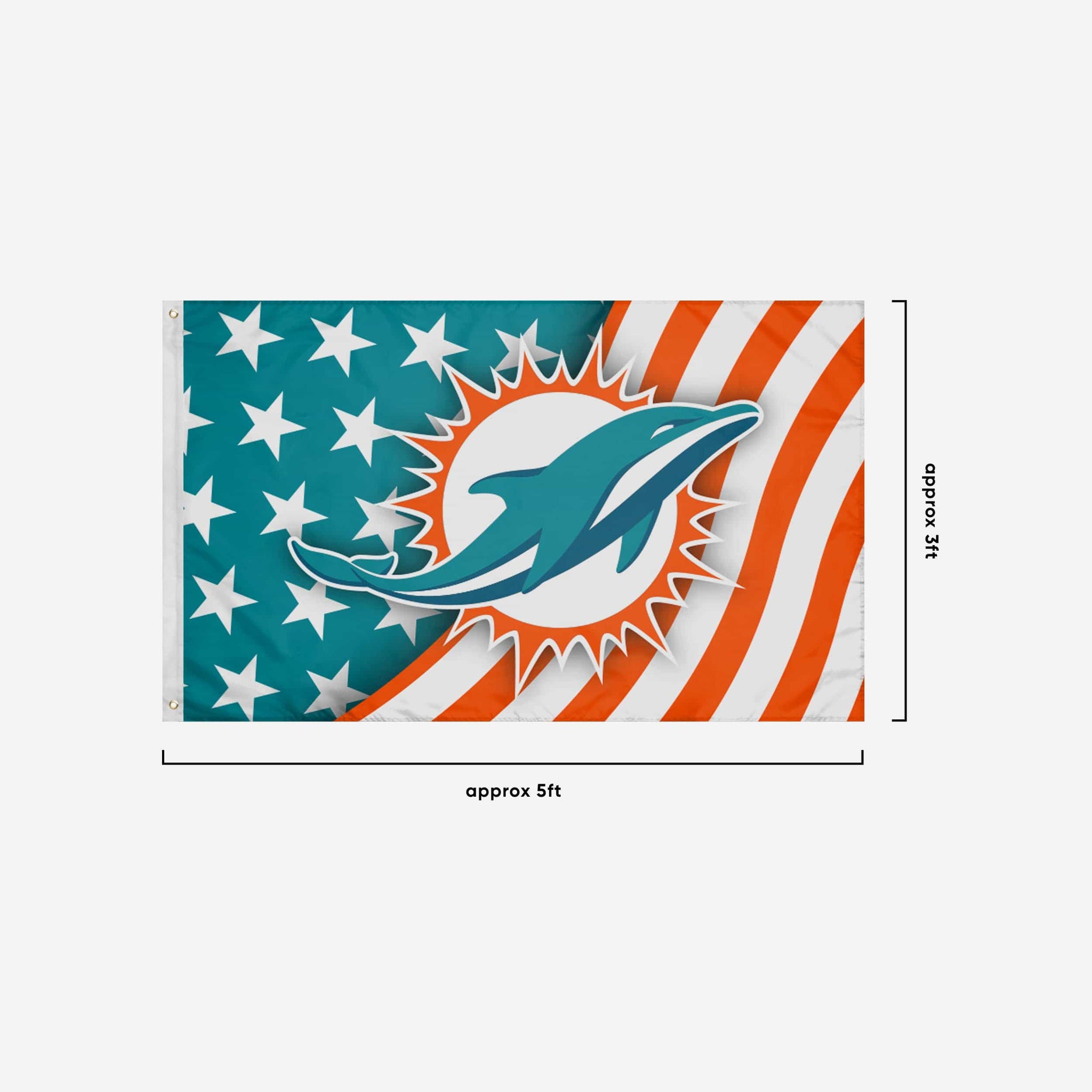 Stars, stripes, and team spirit! This Miami Dolphins Americana Horizontal Flag is just what you need to make sure everyone is pledging allegiance to your fandom!