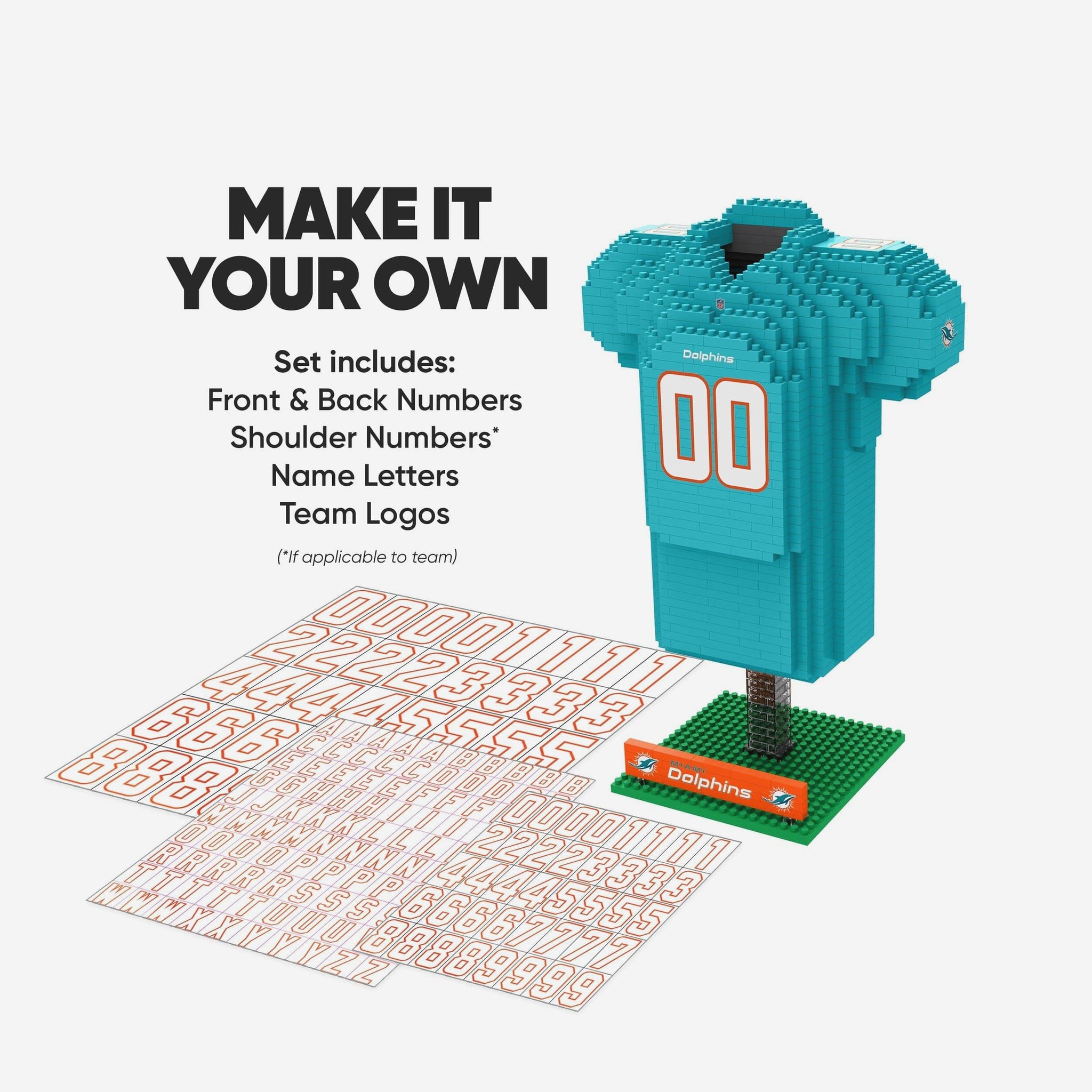 The ultimate fan flex: Your favorite jersey, built by you! Put the pieces together and rep your team with this Miami Dolphins BRXLZ Jersey.