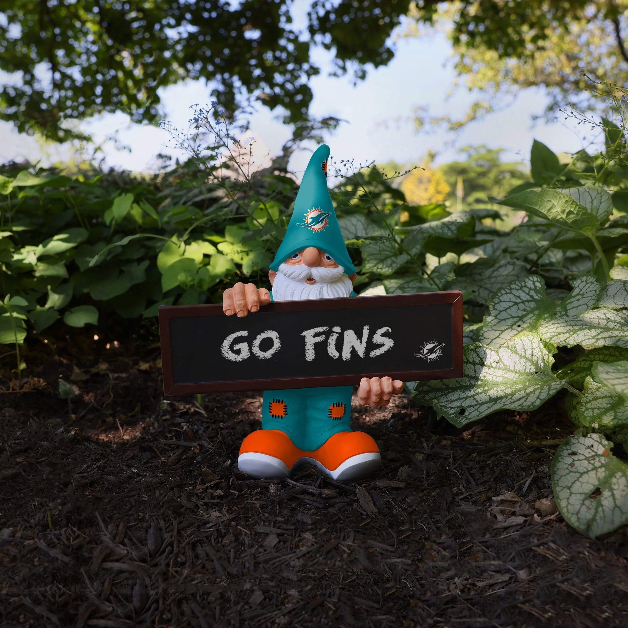 Chalk this one up as a victory! Make a statement and show off your epic team pride with this Miami Dolphins Chalkboard Sign Gnome!