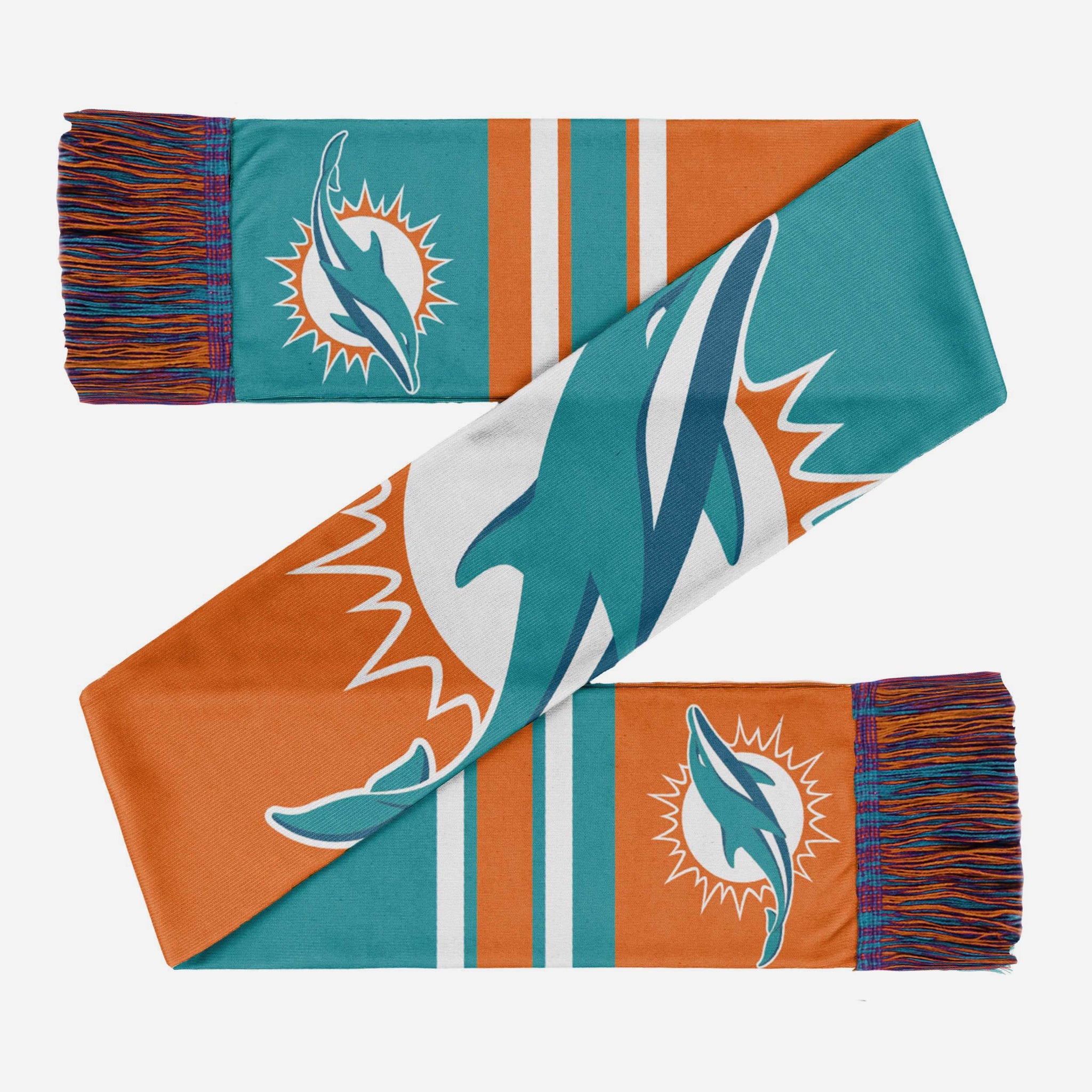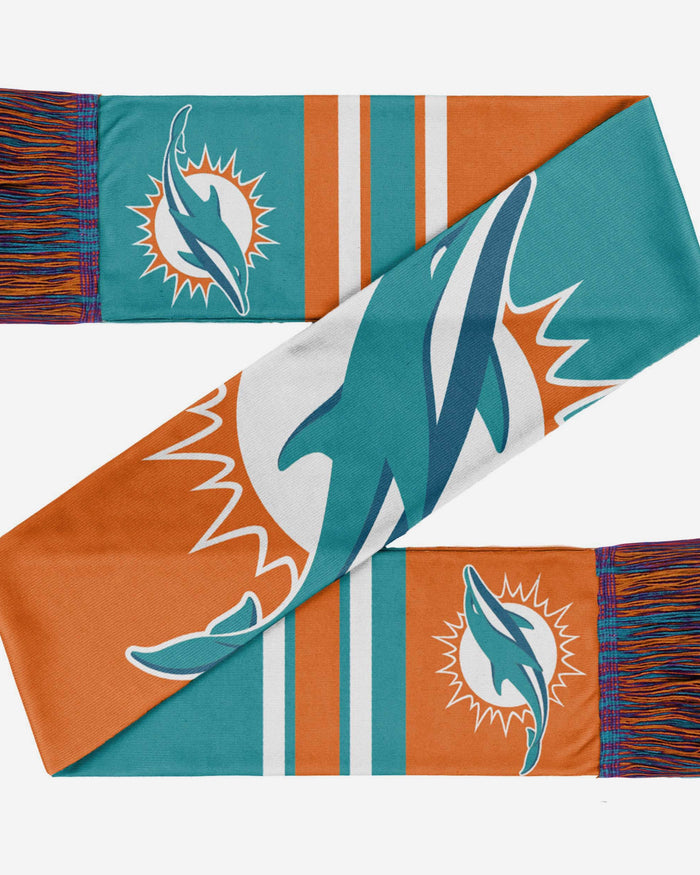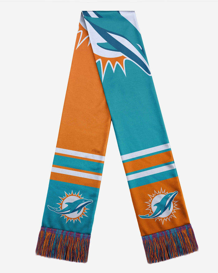Winter means snow days, ski trips, and cheering on your team at the game. It also means cold weather. But that won't be a problem for you while you're wearing this Miami Dolphins Colorblock Big Logo Scarf. It also shows off your legendary team spirit as an added bonus.
