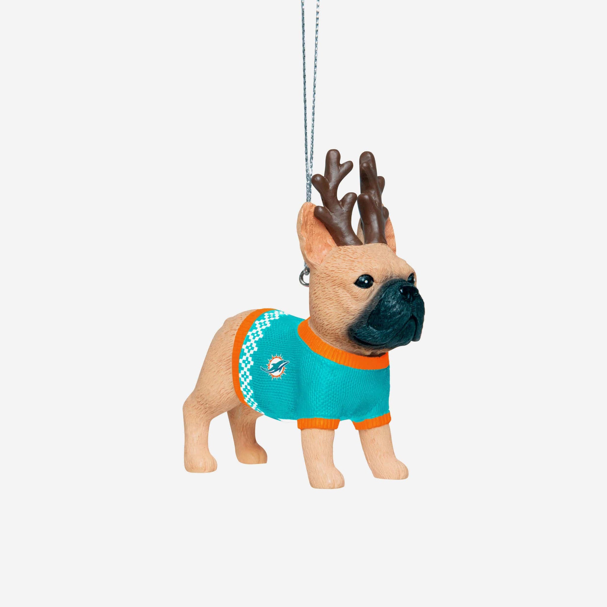 Frenchies are great on their own. But Frenchies in team sweaters? That's even greater! Introducing the Miami Dolphins French Bulldog Wearing Sweater Ornament!