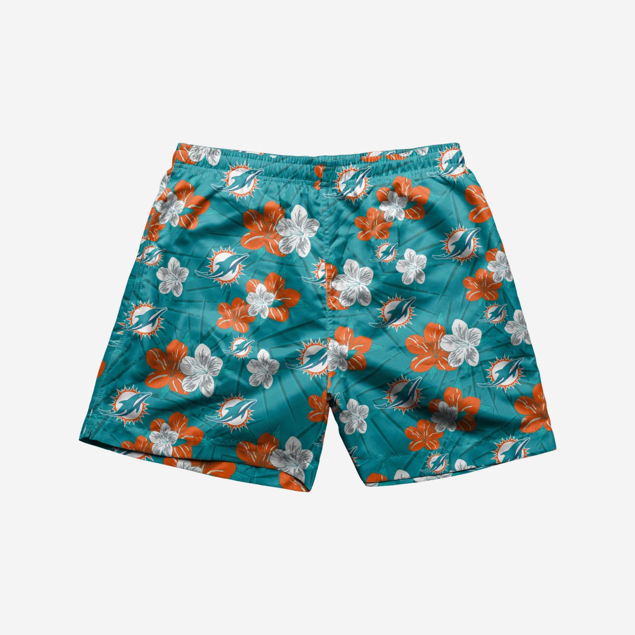Rock your fandom and say "aloha" to the pool, ocean, lake, hot tub, or whatever body of water you're getting into while you wear these Miami Dolphins Hibiscus Swimming Trunks.