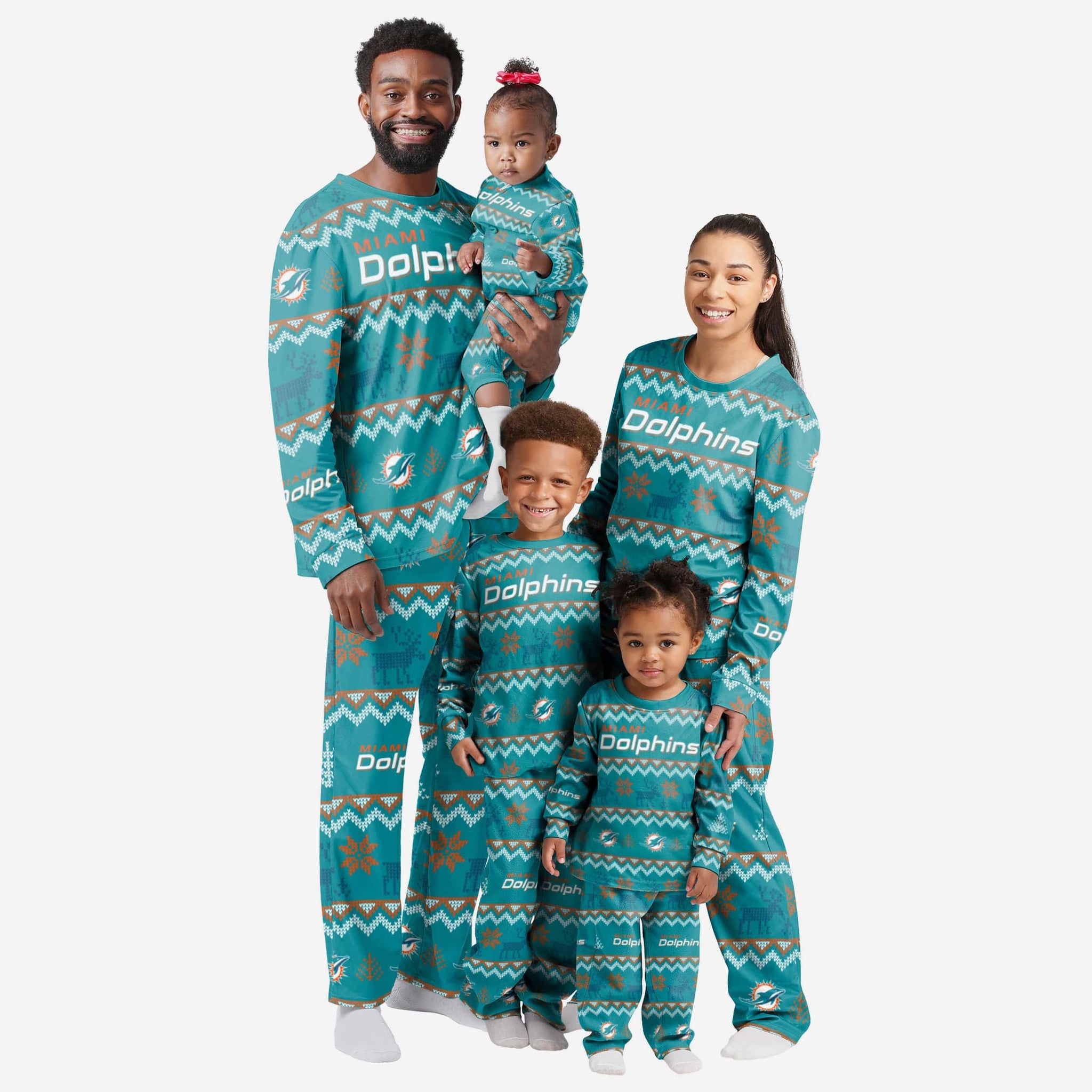 Miami Dolphins Infant Ugly Pattern Family Holiday Pajamas FOCO - FOCO.com
