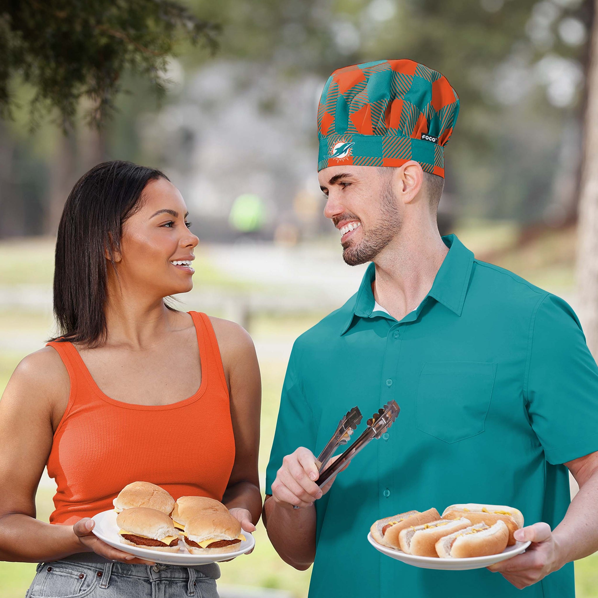Ready to serve up the best food in the greatest fan fit? The Miami Dolphins Plaid Chef Hat is here to help you bring fandom to your most flavorful dishes.