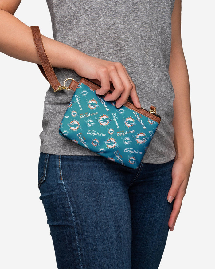 The only thing more important than carrying the team is doing it in style. And you can do just that with this Miami Dolphins Printed Collection Repeat Logo Wristlet. No one will question your fashion sense, or who you're rooting for on gameday.