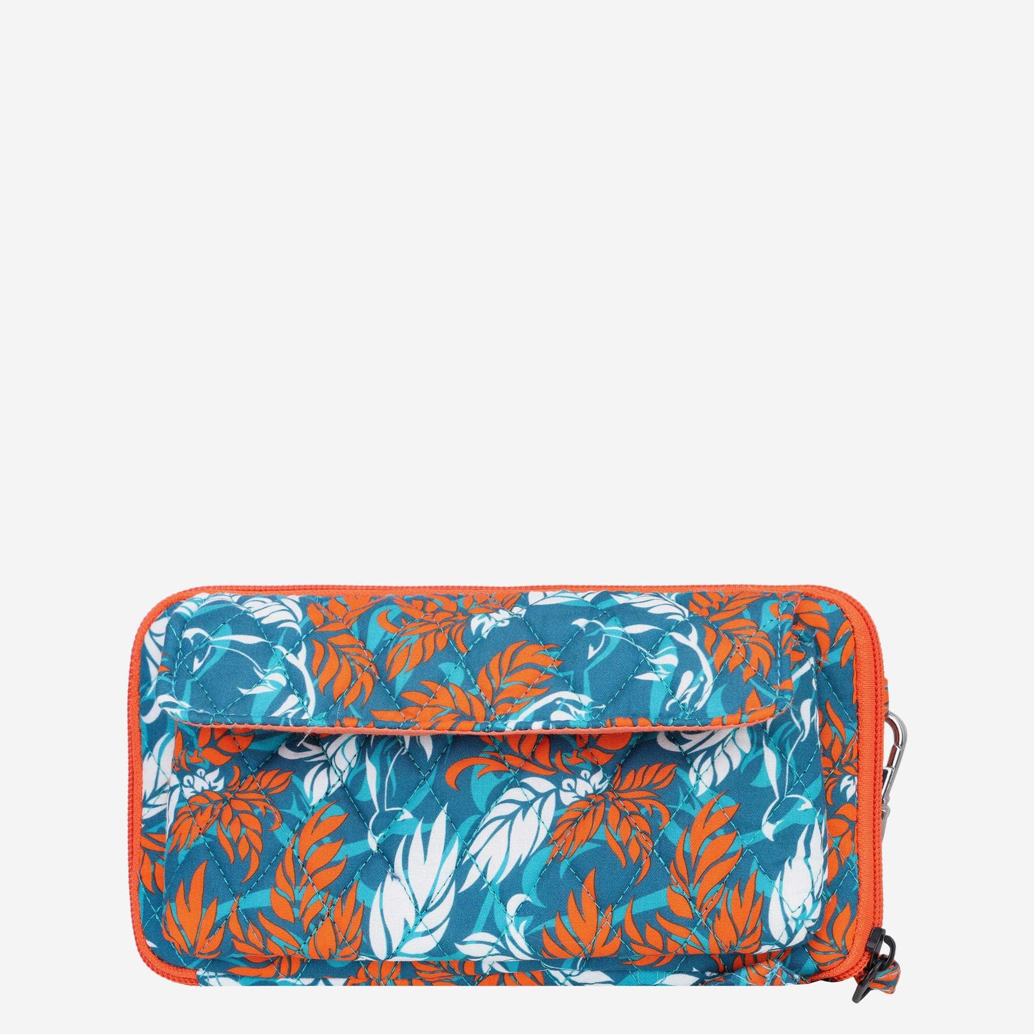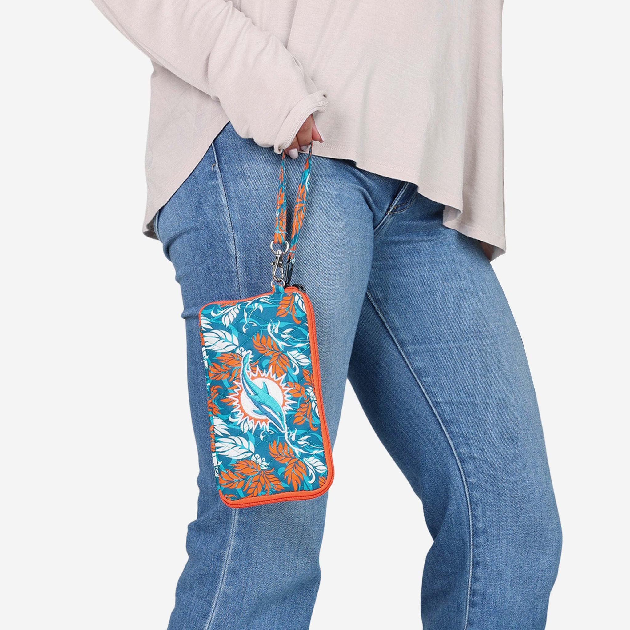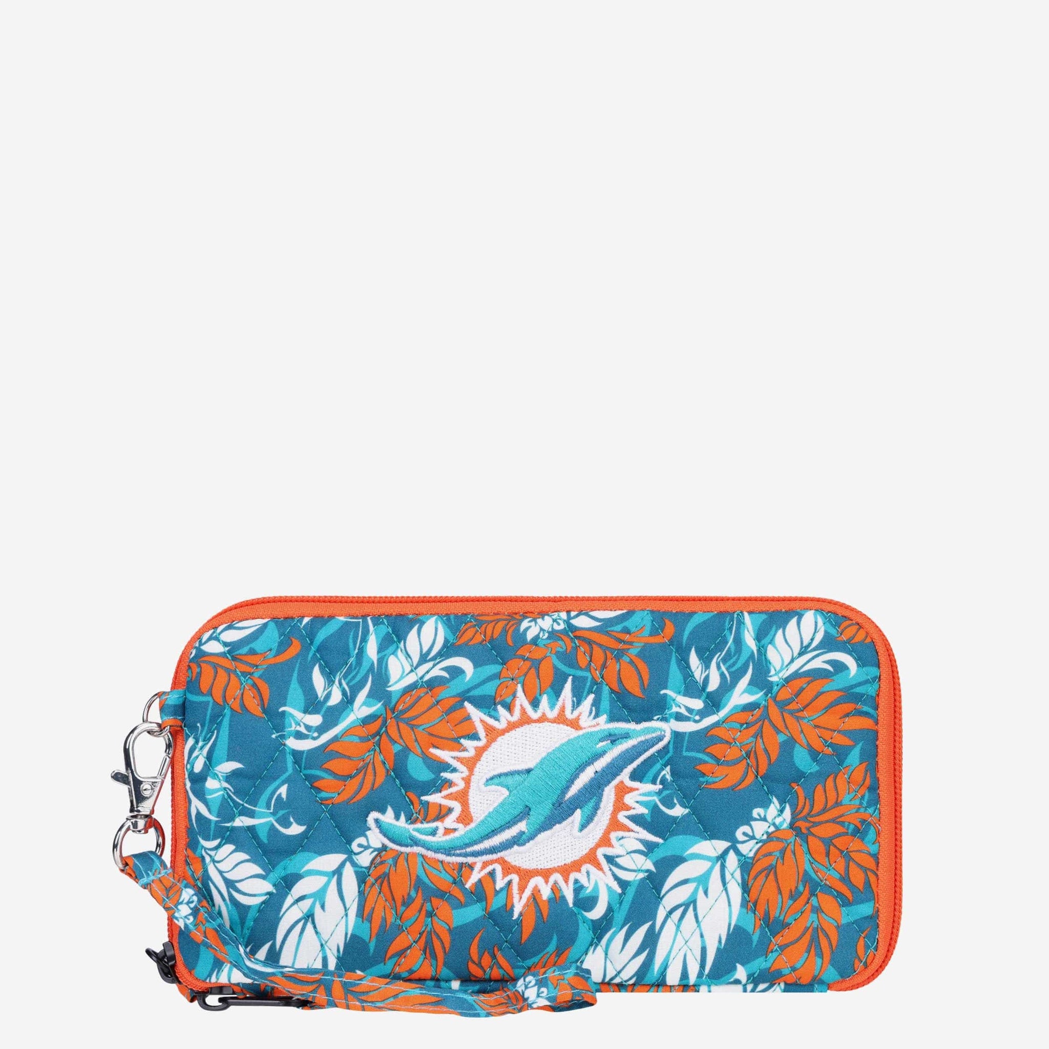 Get ready to fashionably flaunt your fandom! Keep your essentials close and your team pride on display with the Miami Dolphins Quilted Printed Wristlet.