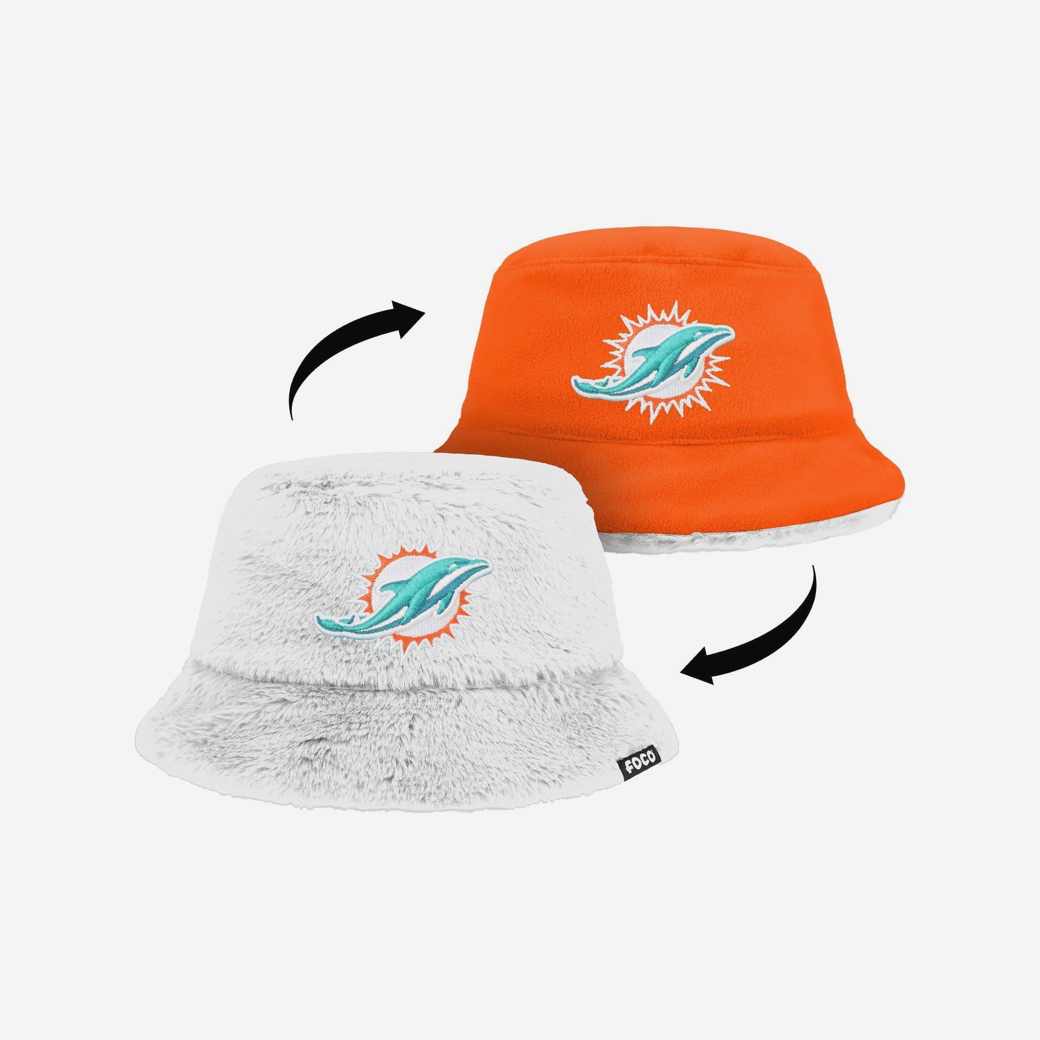 Two looks. One legend. Flip the script with the Miami Dolphins Reversible Faux Fur Bucket Hat. Rock the ultra-soft faux fur side when you want cozy vibes that turn heads, then reverse it to the fleece side for a chill look that still shouts team pride. Both sides feature embroidered logos and team colors, so your loyalty is loud no matter how you wear it.