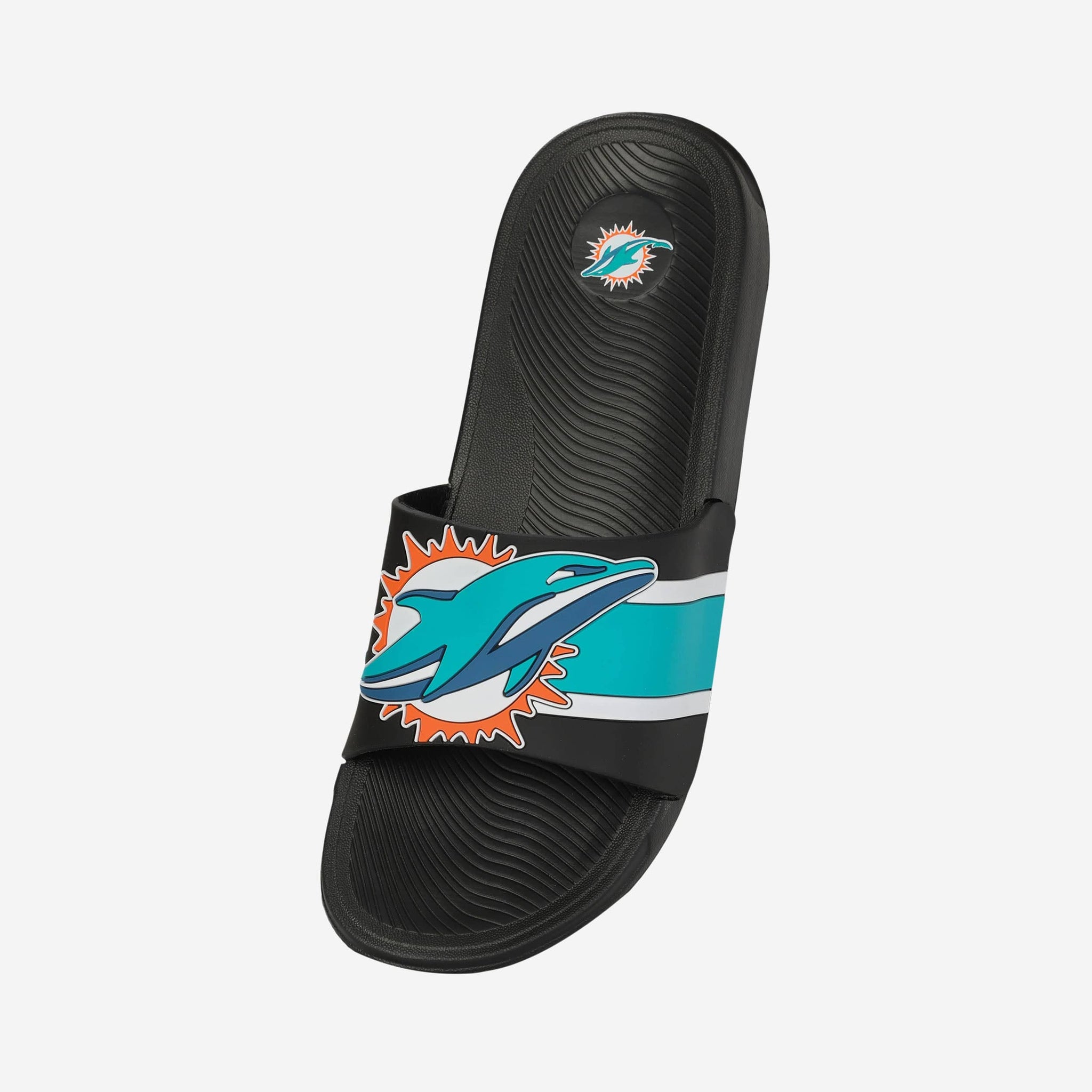Miami Dolphins Striped Big Logo Raised Slide FOCO S - FOCO.com