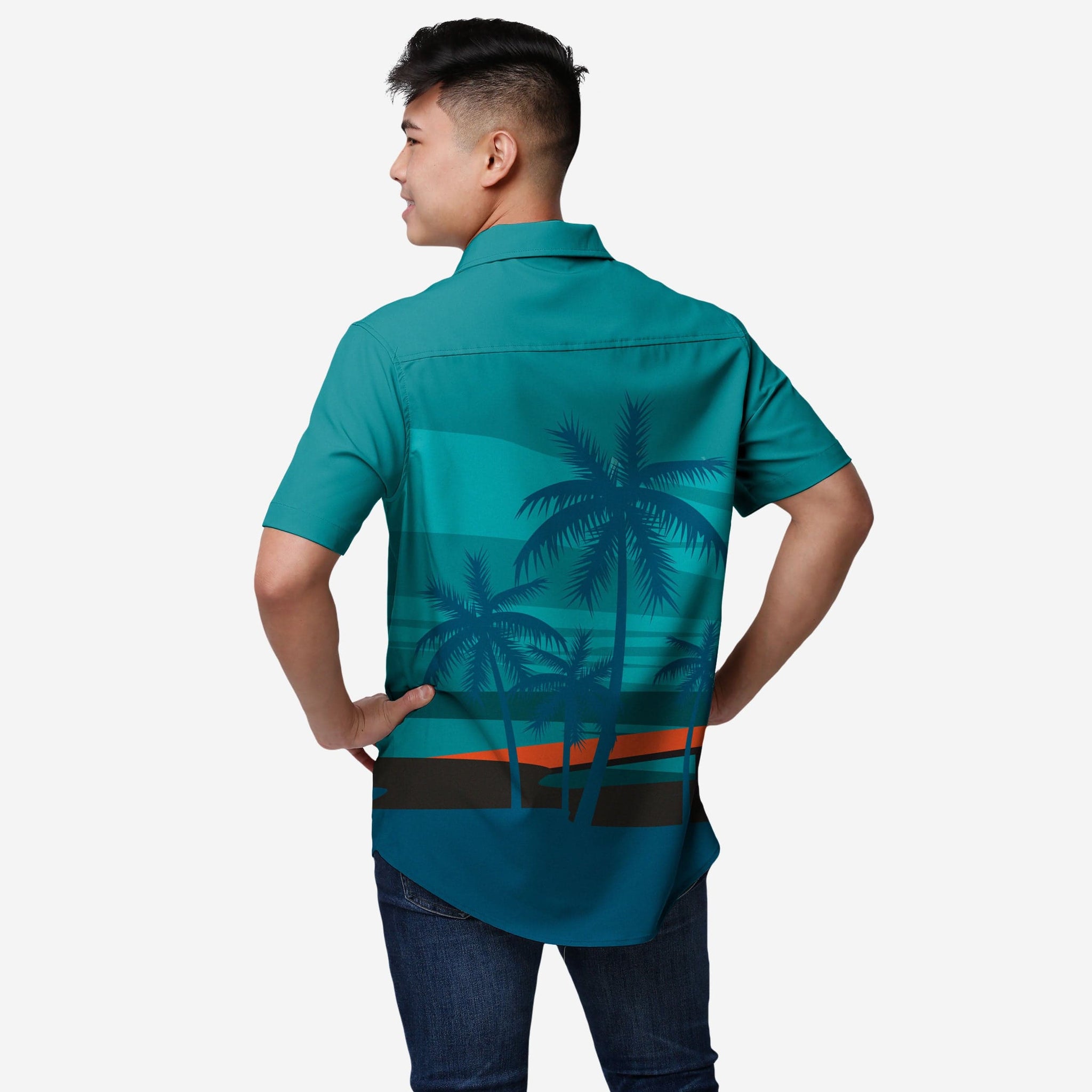 Aloha from paradise! Soak up the rays of a scenic summer sunset when you're rocking this Miami Dolphins Tropical Sunset Button Up Shirt, where it's always island time.