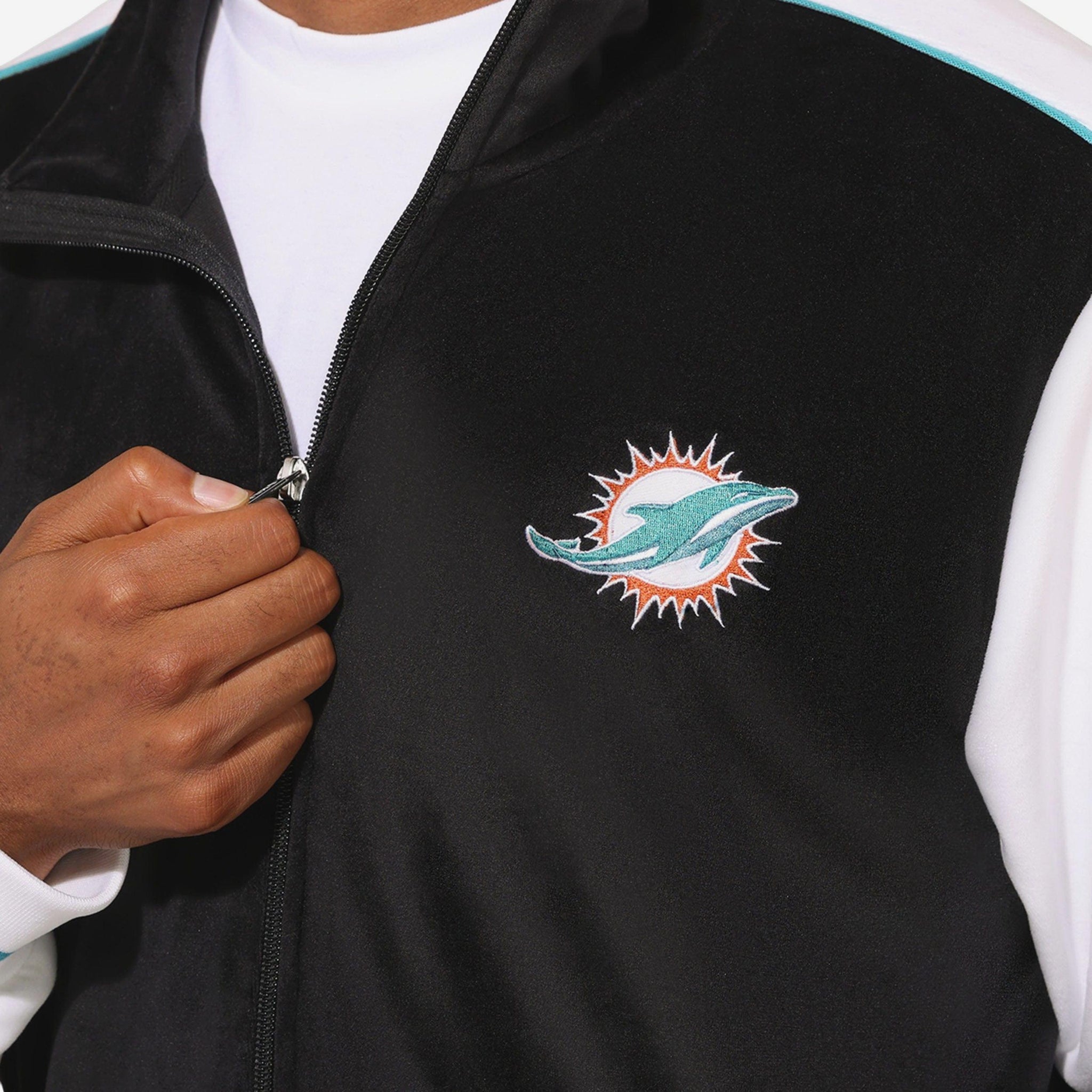 Soft, stylish, and straight-up iconic. Elevate your fan fit with this Miami Dolphins Two Tone Velour Zip Up Top! Featuring a sleek two-tone design, ultra-soft velour fabric, and a full front zipper, this top brings comfort, warmth, and team pride together in one stylish package.