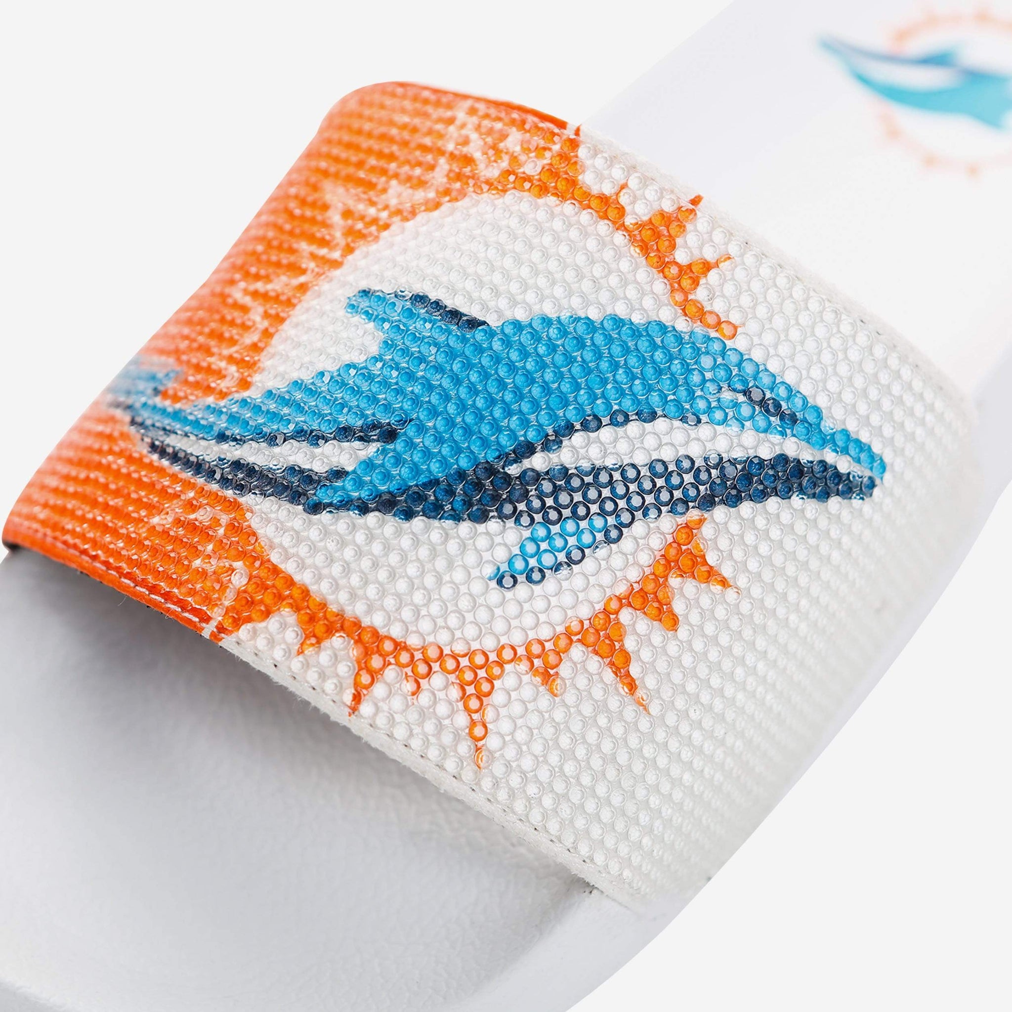 These Miami Dolphins Women's Big Logo Shimmer Slides are the jewel of fresh fan footwear! Let your team spirit shine like a beacon of awesome!